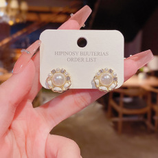 S925银针简约气质圆圈猫眼石耳钉ins风网红同款个性时尚耳环耳饰