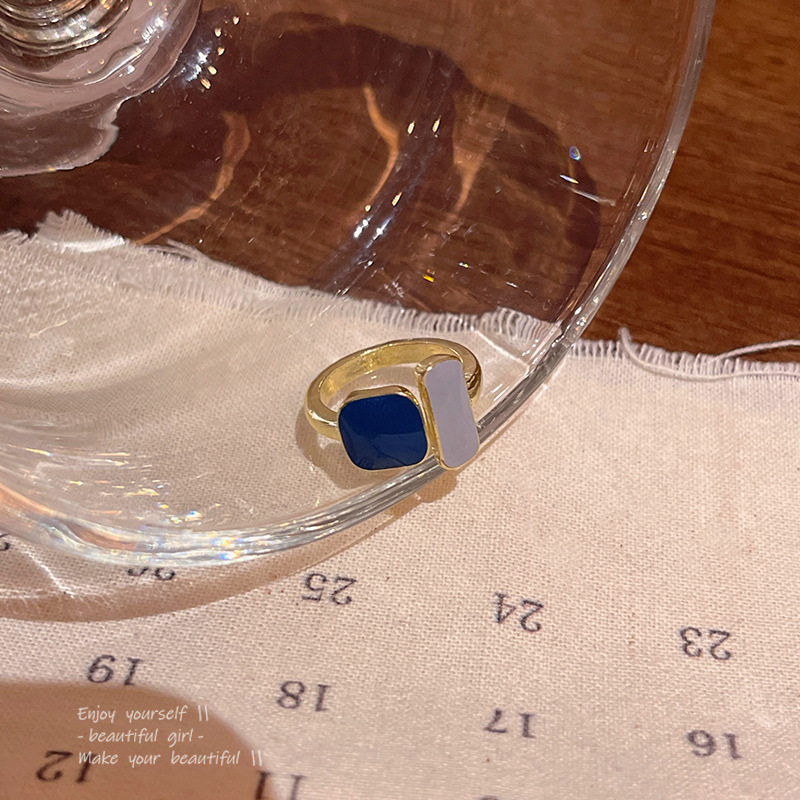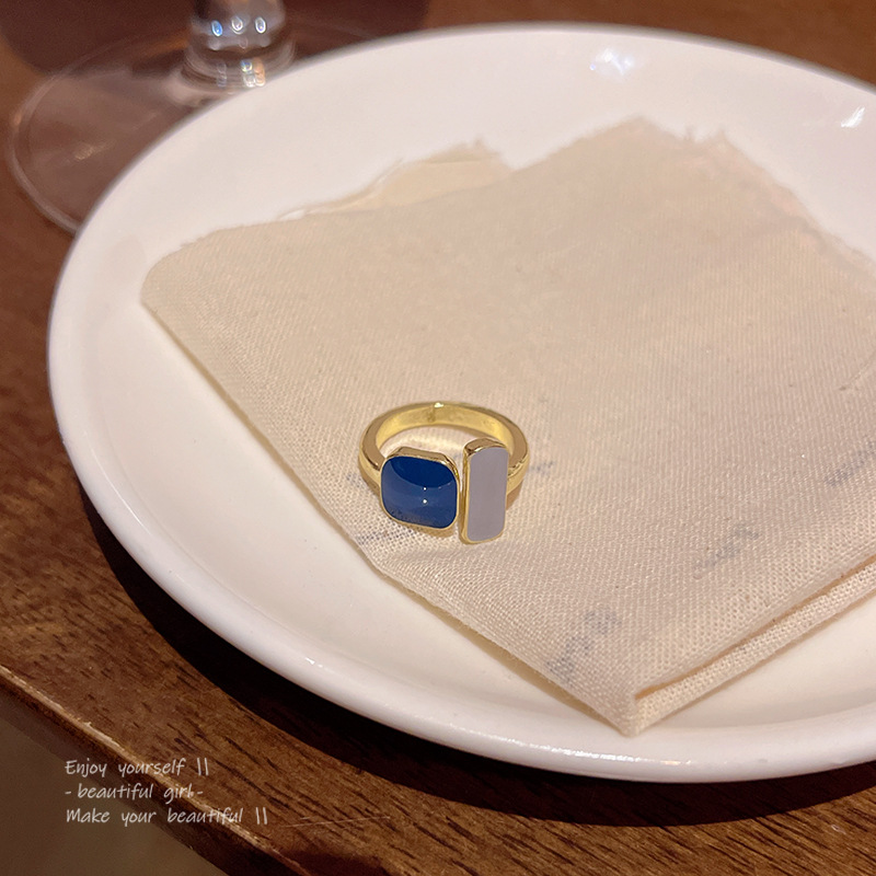 韩系复古滴釉蓝色开口戒指女ins潮轻奢小众百搭气质食指戒指环