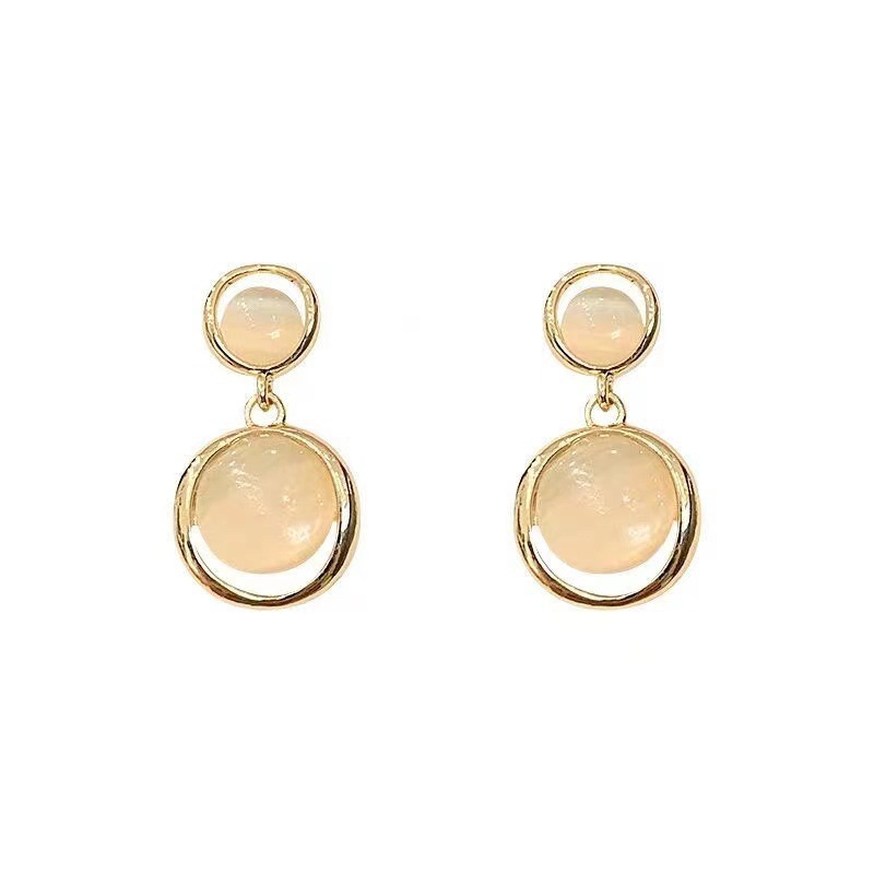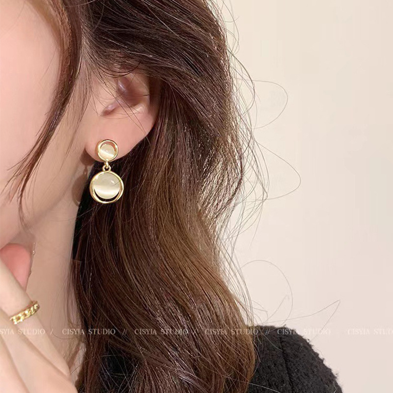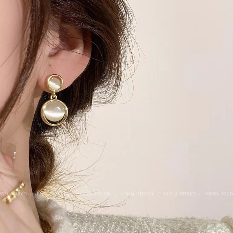 S925银针轻奢小众高级感猫眼石耳环女简约气质几何形耳钉网红耳饰