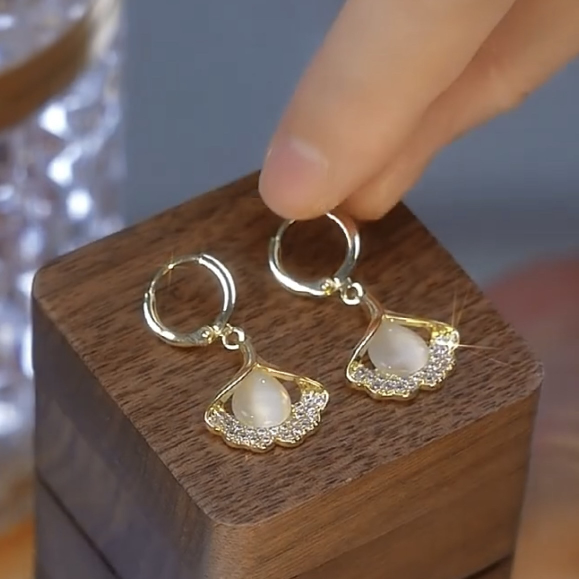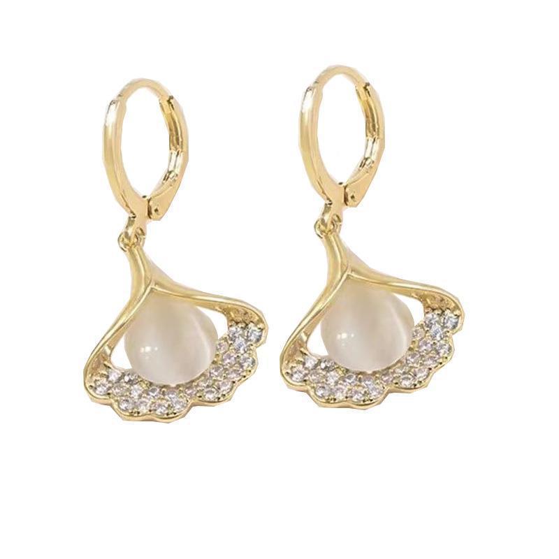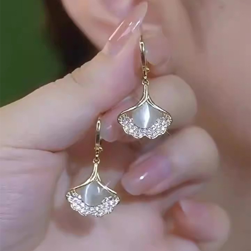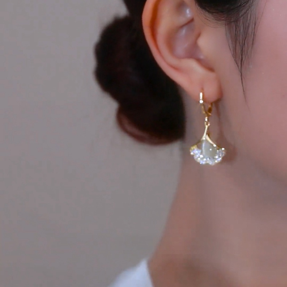 三生有杏时尚气质猫眼石银杏叶耳环女轻奢小众高级感花朵耳钉耳饰