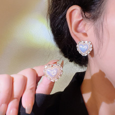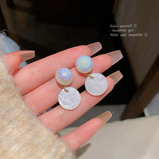S925银针轻奢小众超闪贝母圆圈耳环女ins潮百搭气质彩色珍珠耳钉