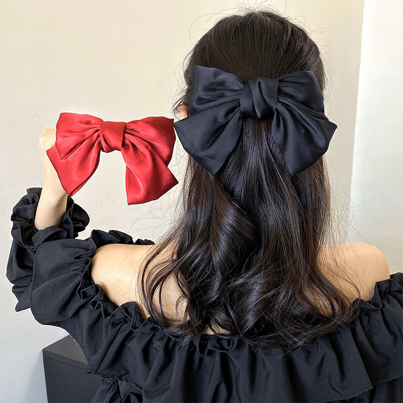 网红同款黑色蝴蝶结发夹后脑勺夏季头饰顶夹大号飘带发卡头绳头饰