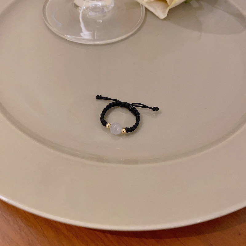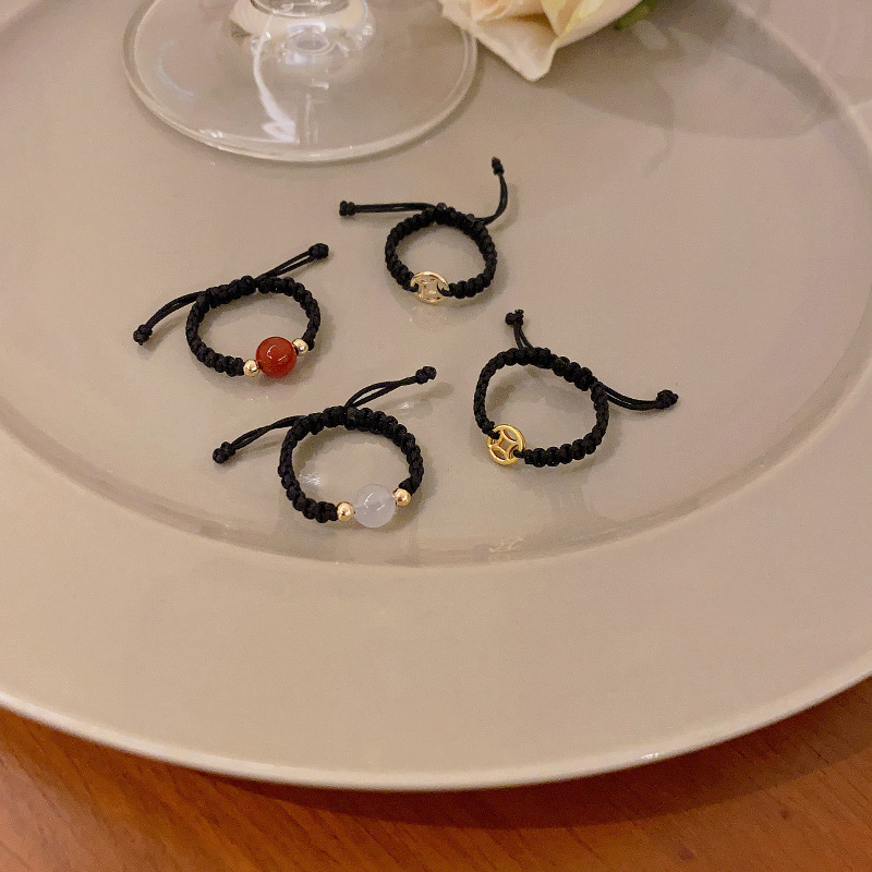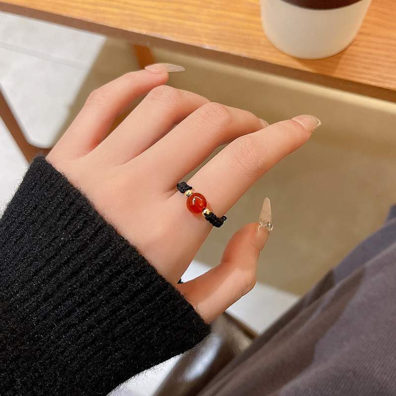 国潮轻奢小众相思红豆编织戒指女红玛瑙时尚中国风食指戒指环批发