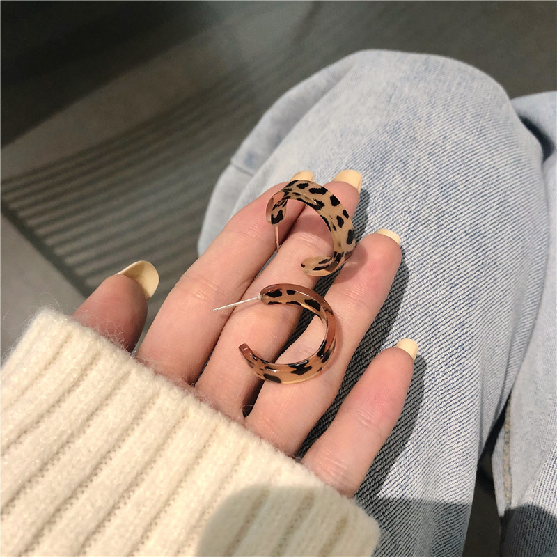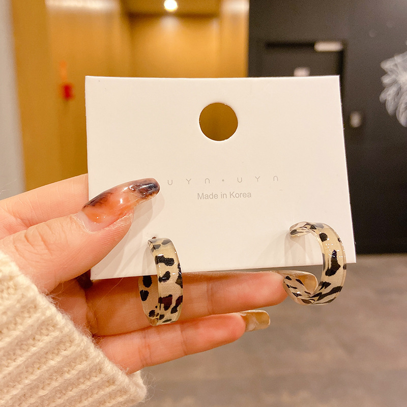 秋冬款时尚气质豹纹C形耳环女ins潮港风复古高简约高级感耳钉耳饰