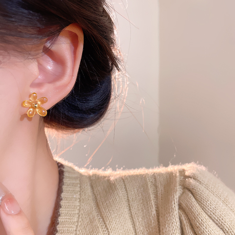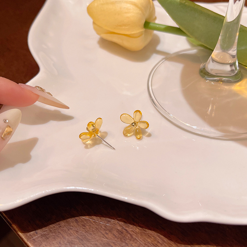 小众百搭气质简约小花朵耳钉女ins潮学生养耳洞亚克力花朵耳环