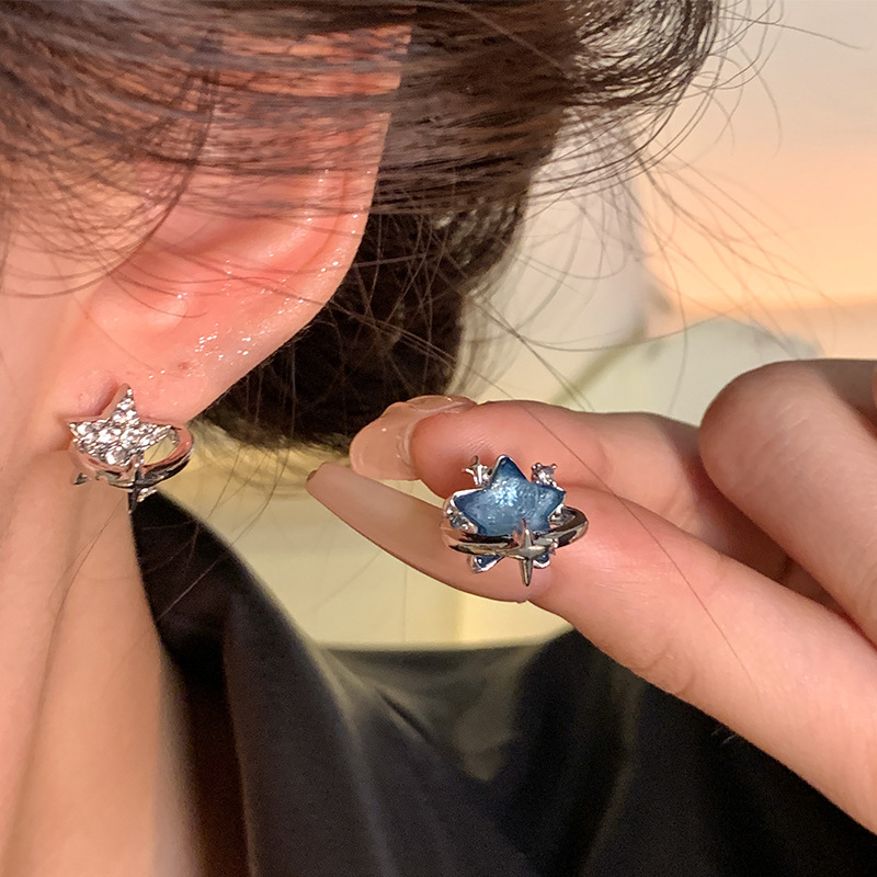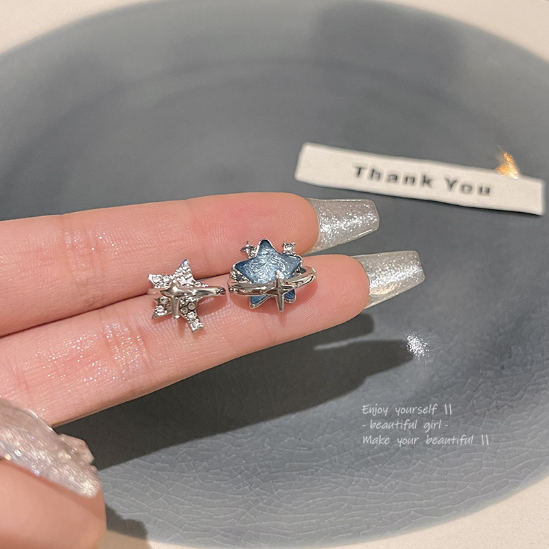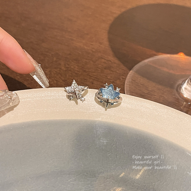 S925银针轻奢小众不对称星星耳钉女高级设计感网红同款耳环耳饰品