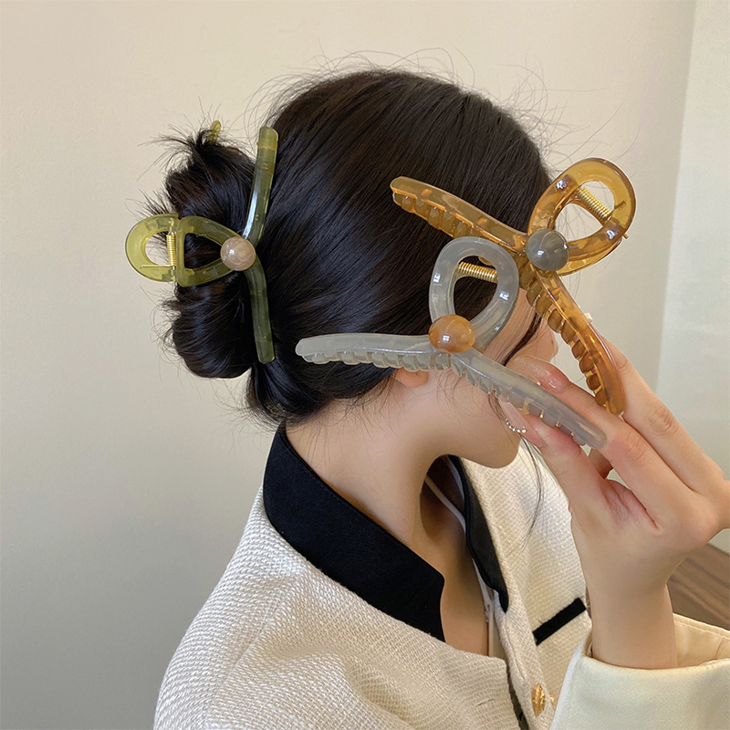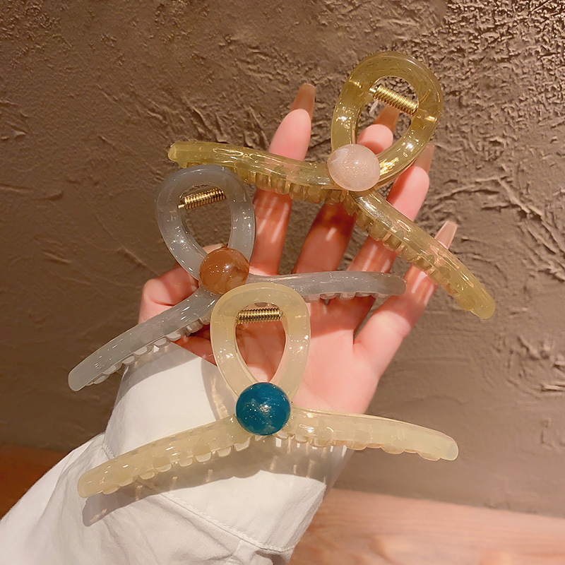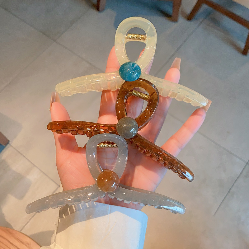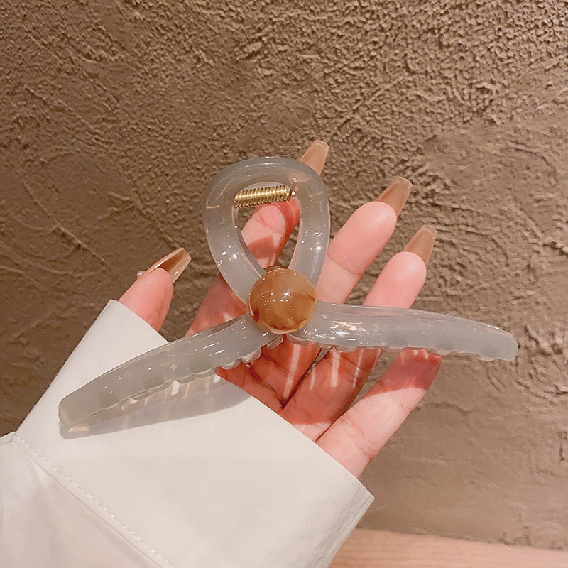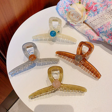 韩版网红同款果冻色珠子发夹女后脑勺简约气质抓夹鲨鱼夹头饰批发