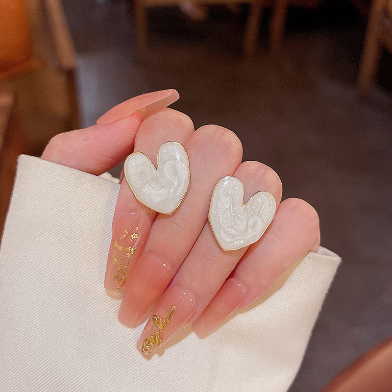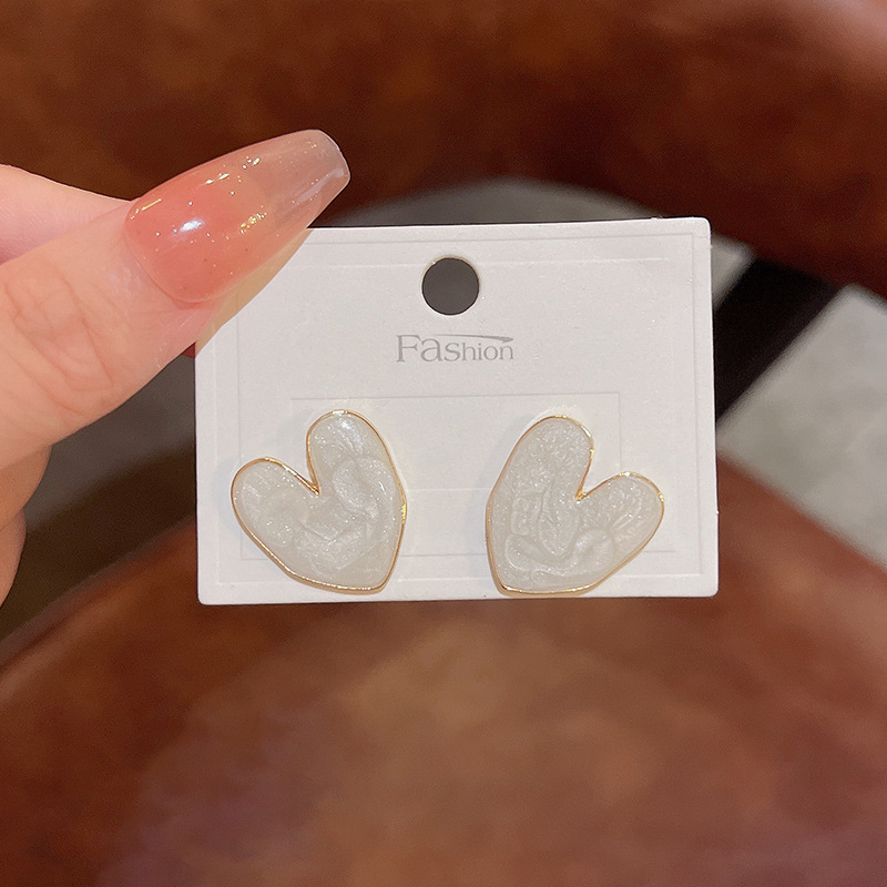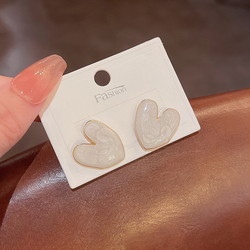 925银针简约可爱桃心耳钉ins潮百搭气质滴油纹理爱心耳环女耳饰品