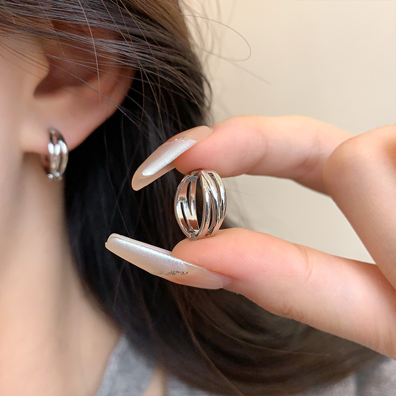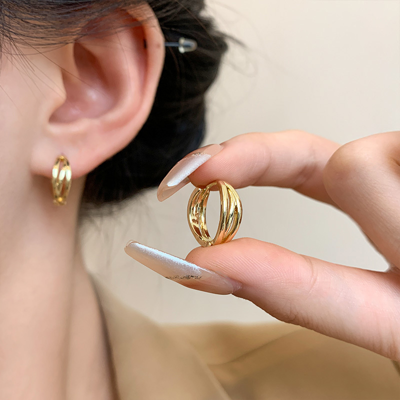 轻奢小众高级感简约素圈耳扣耳钉女ins潮港风复古百搭气质耳环