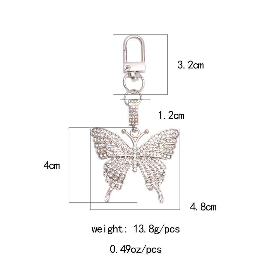 欧美炫彩水钻镶嵌蝴蝶钥匙扣金属合金创意女包包挂件钥匙链圈礼品