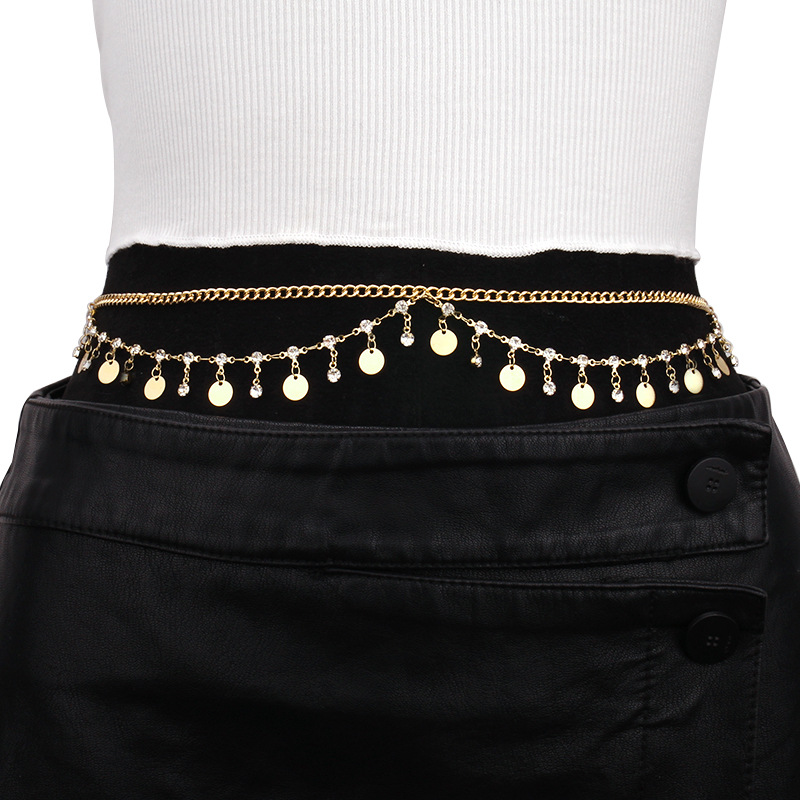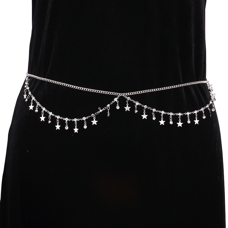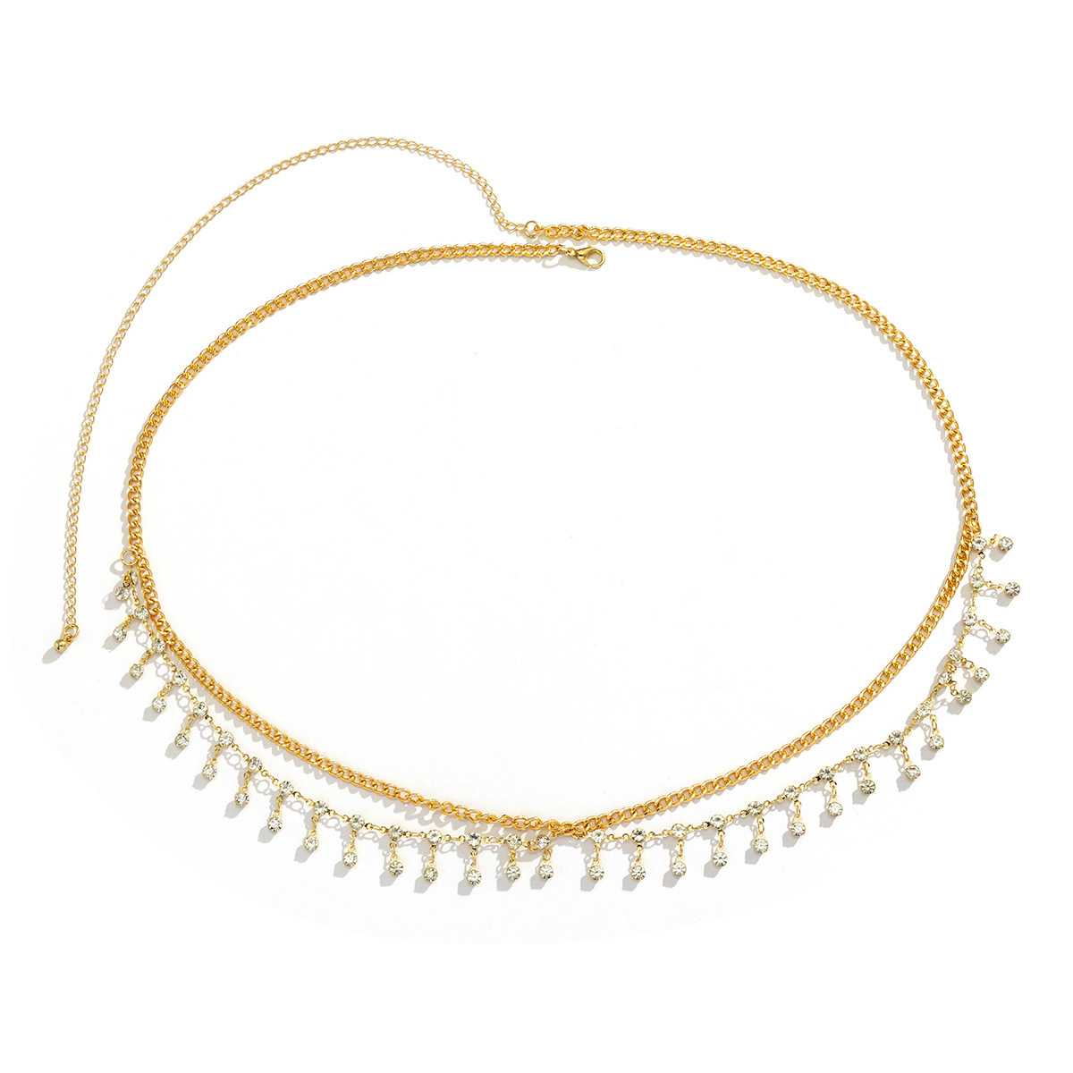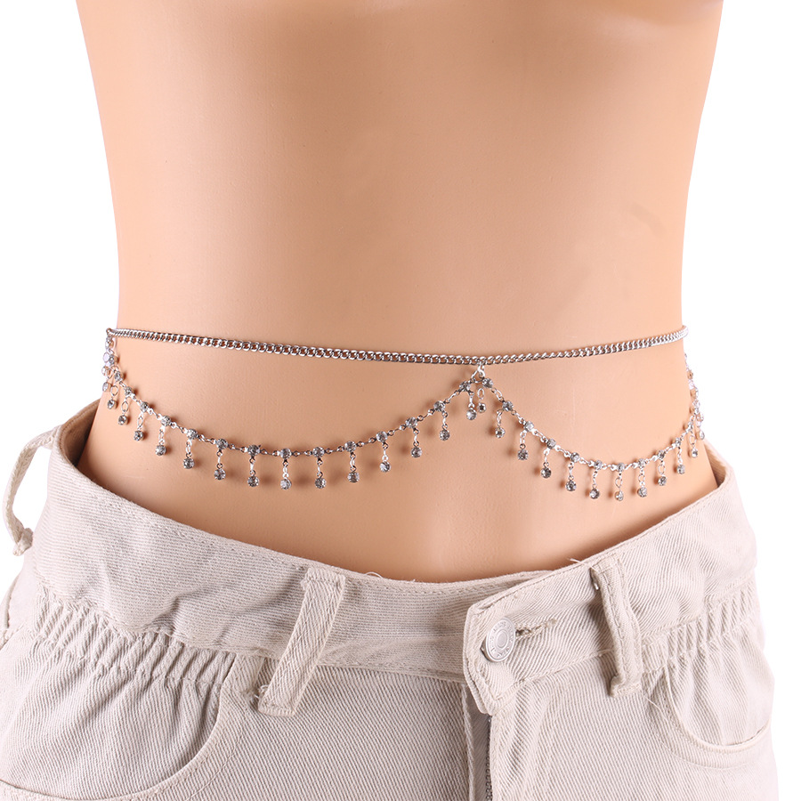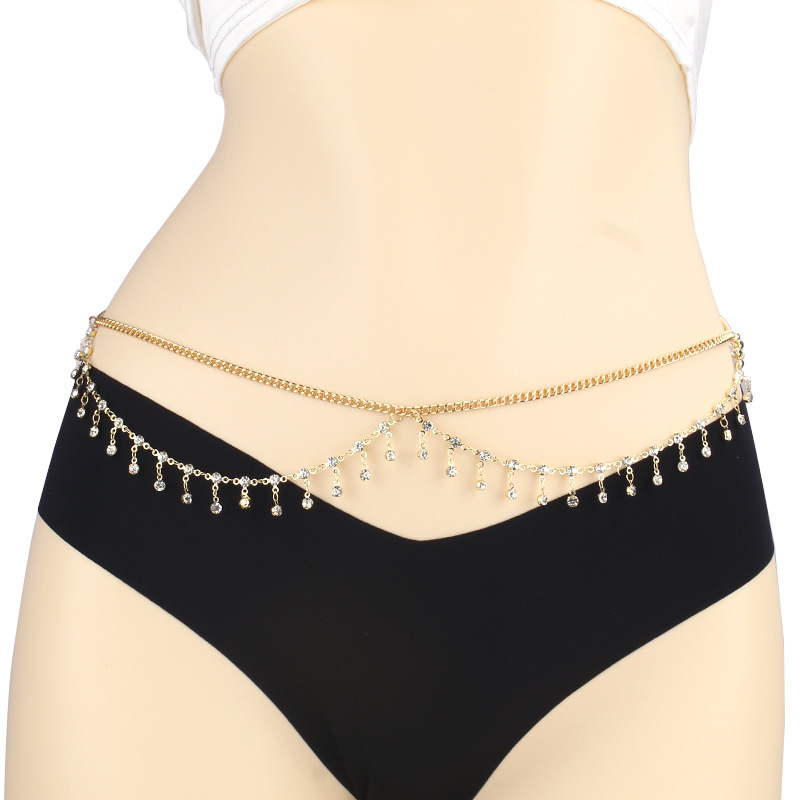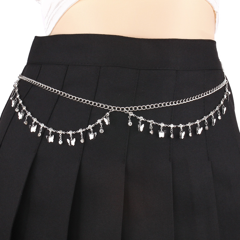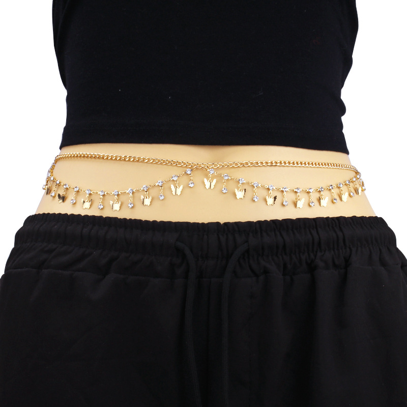 欧美跨境饰品 比基尼水钻链条腰饰双层身体链 蝴蝶金属流苏腰链女