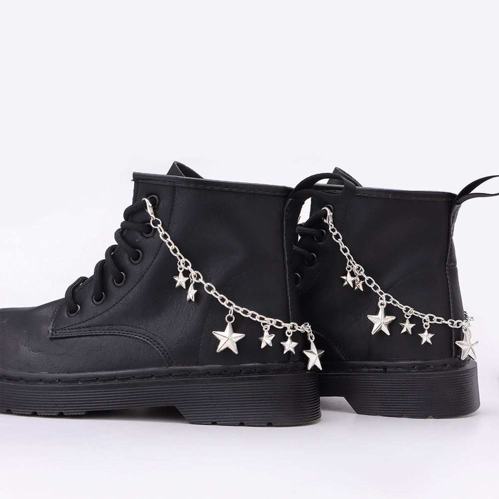 秋冬新品 百搭星星马丁靴鞋装饰配件甜酷大小五角星吊坠链条鞋链