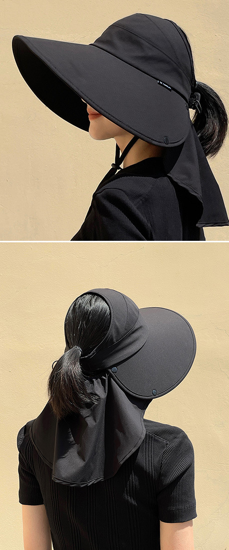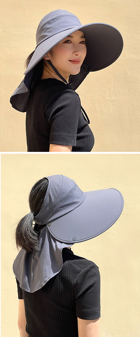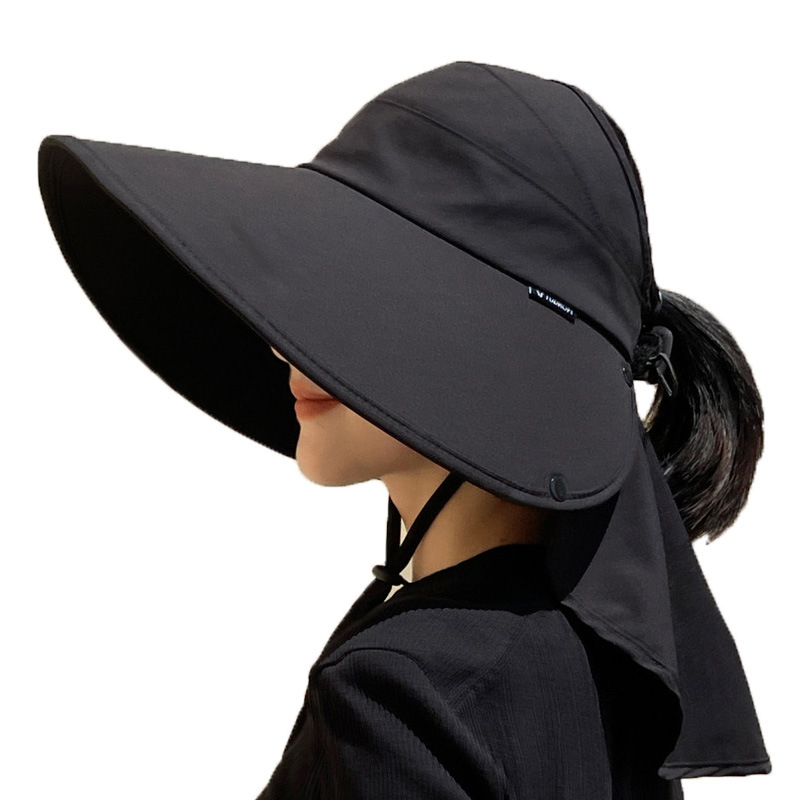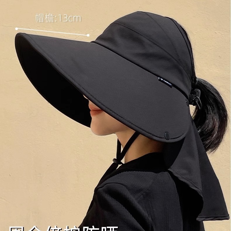 防晒帽女夏季防紫外线户外骑行空顶帽大帽檐遮全脸护颈遮阳渔夫帽