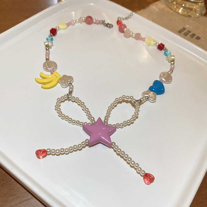 甜酷辣妹镶钻爱心芒星项链时尚创意设计感锁骨链冷淡风项坠项饰女