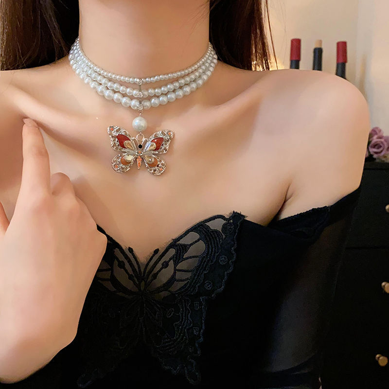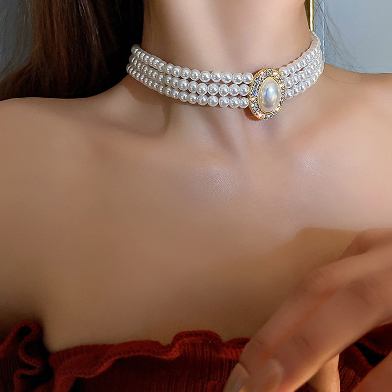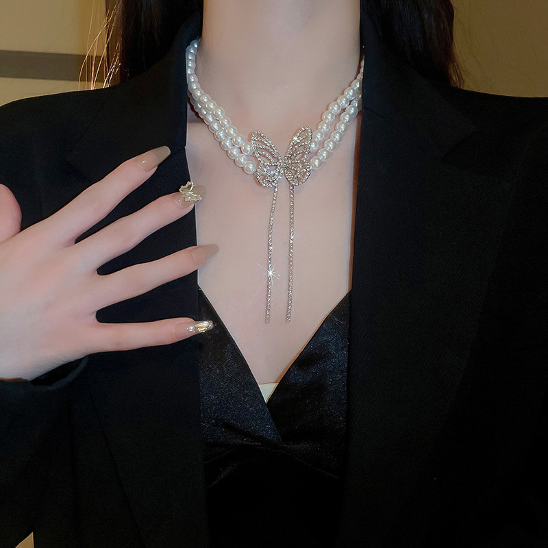 真金电镀珍珠镶钻花朵项链小众时尚百搭锁骨链气质轻奢高级感饰品