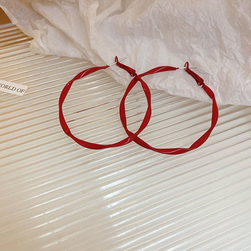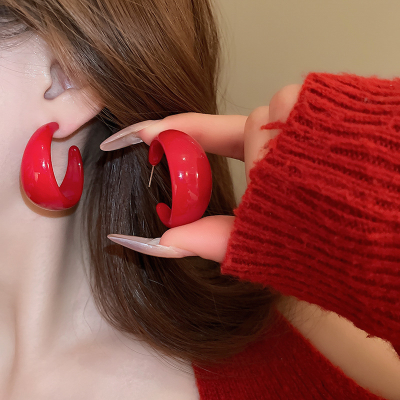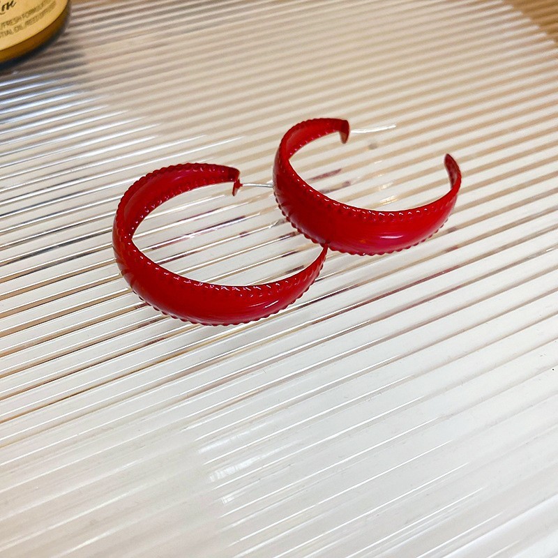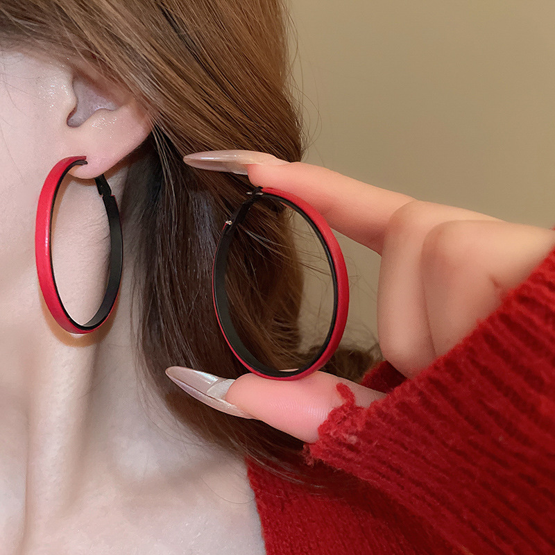 银针滴油安可拉红色素圈耳环小众夸张欧美耳钉耳圈高级感轻奢耳饰
