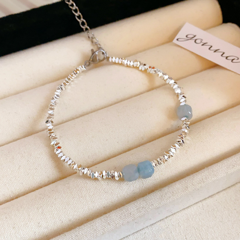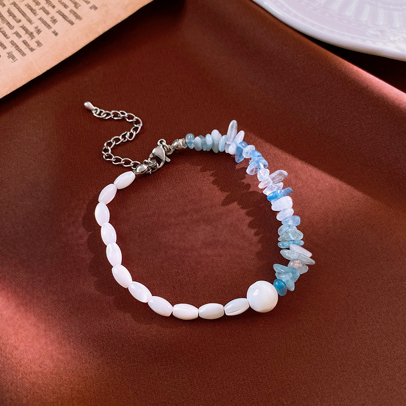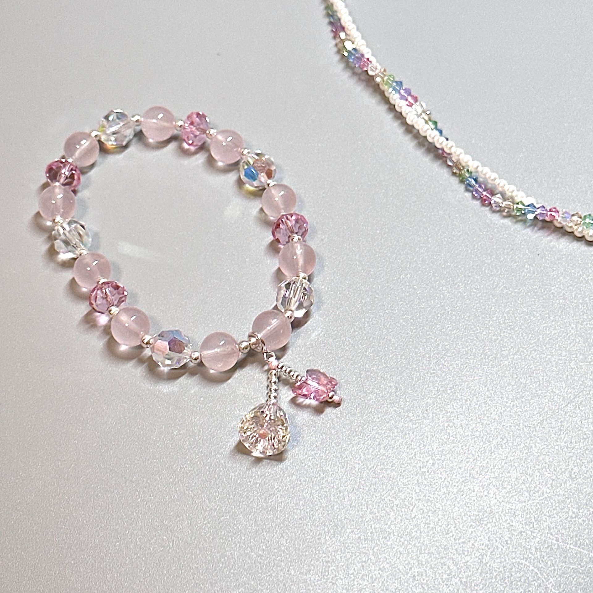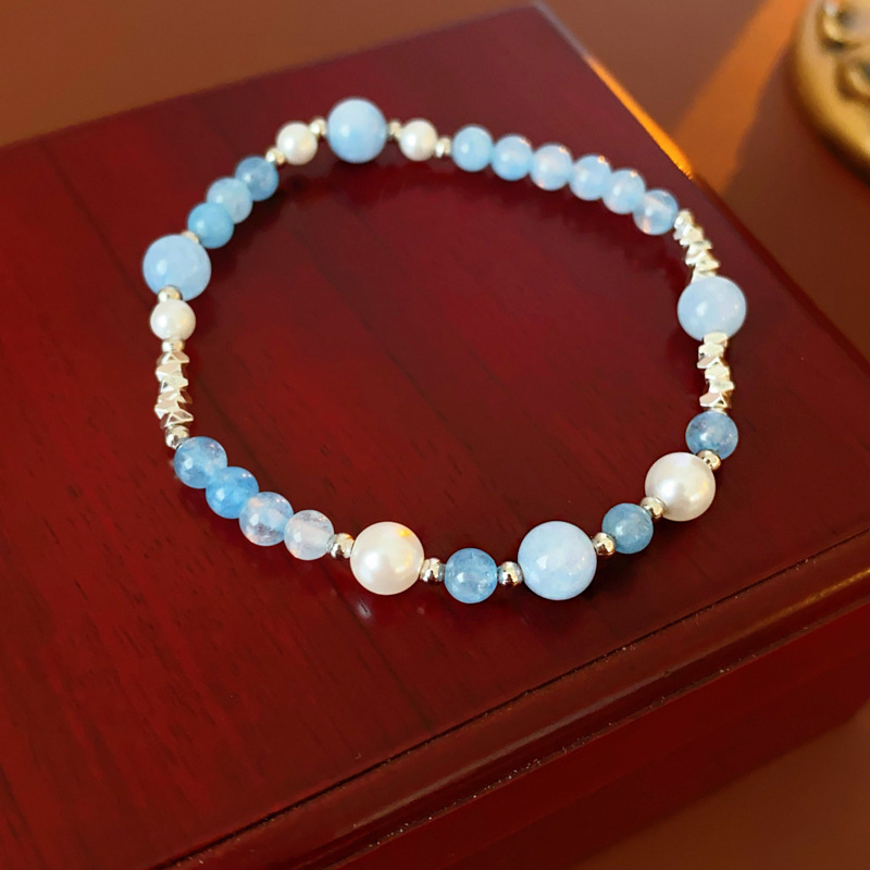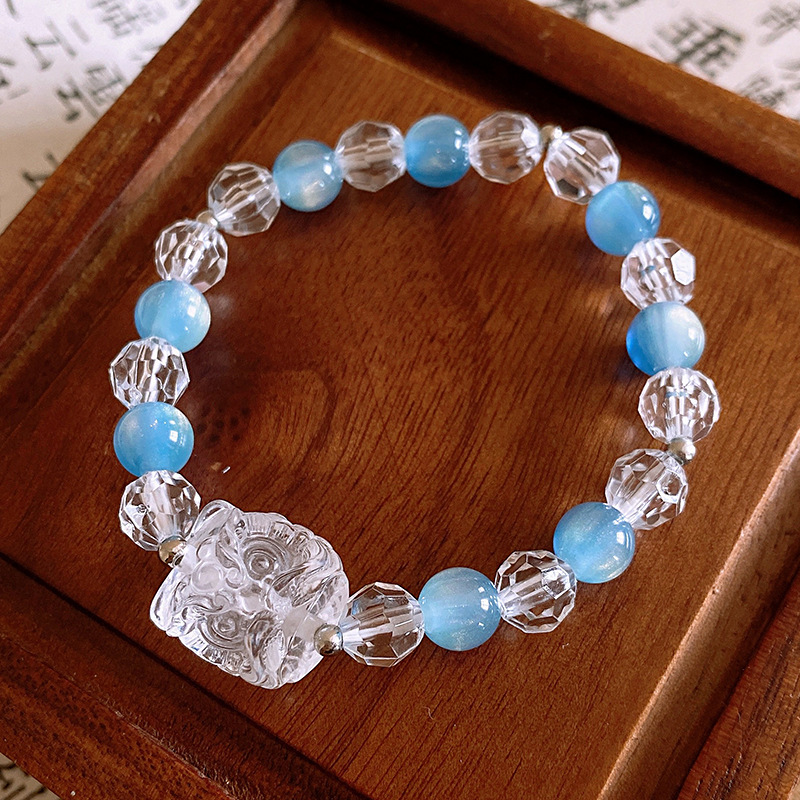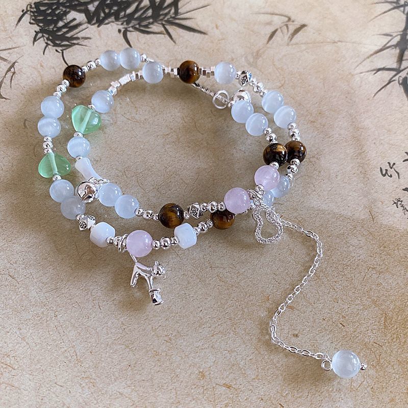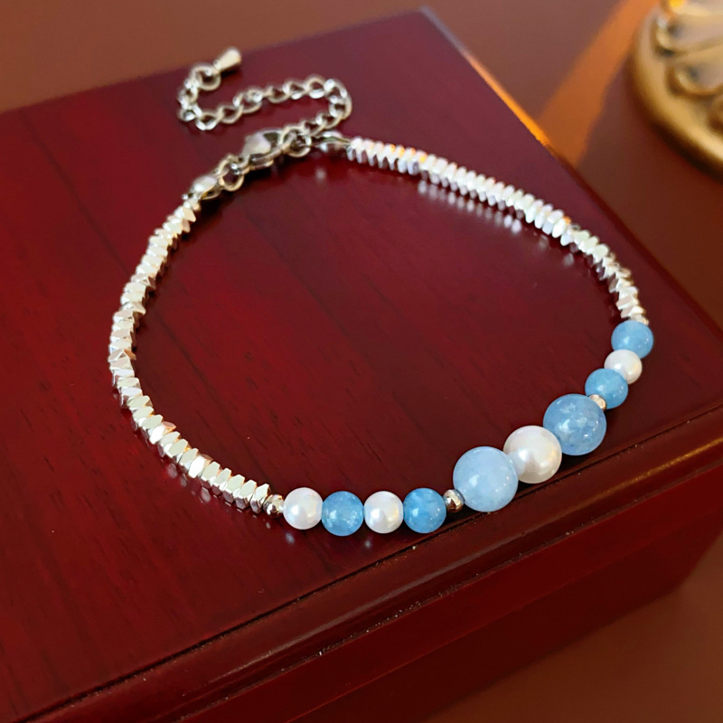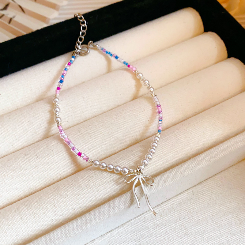 国潮新中式蝴蝶花朵淡水珍珠手链个性古风粉蓝玻璃珠串手环手饰女