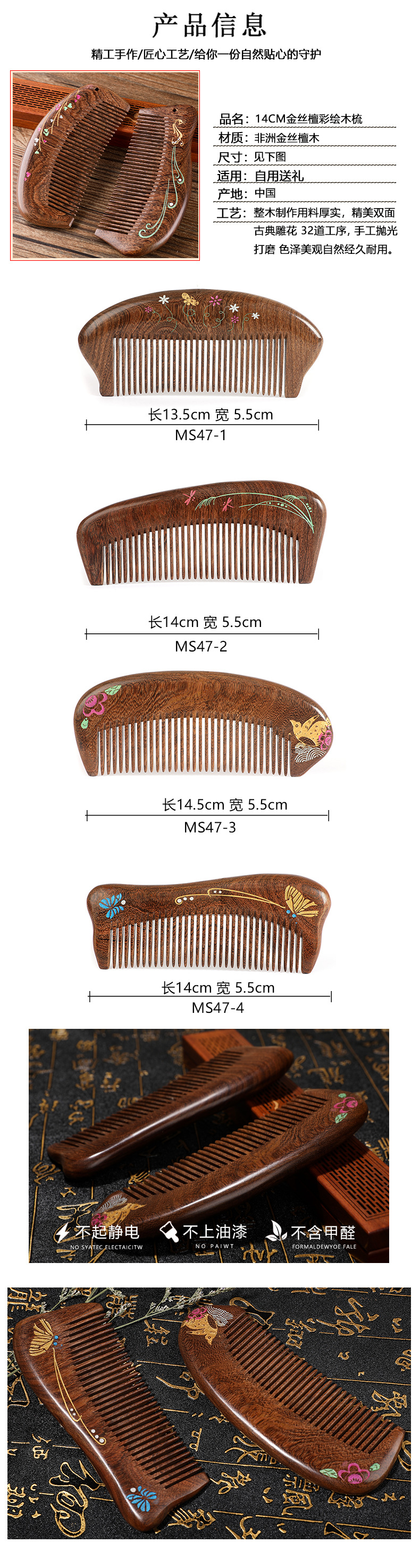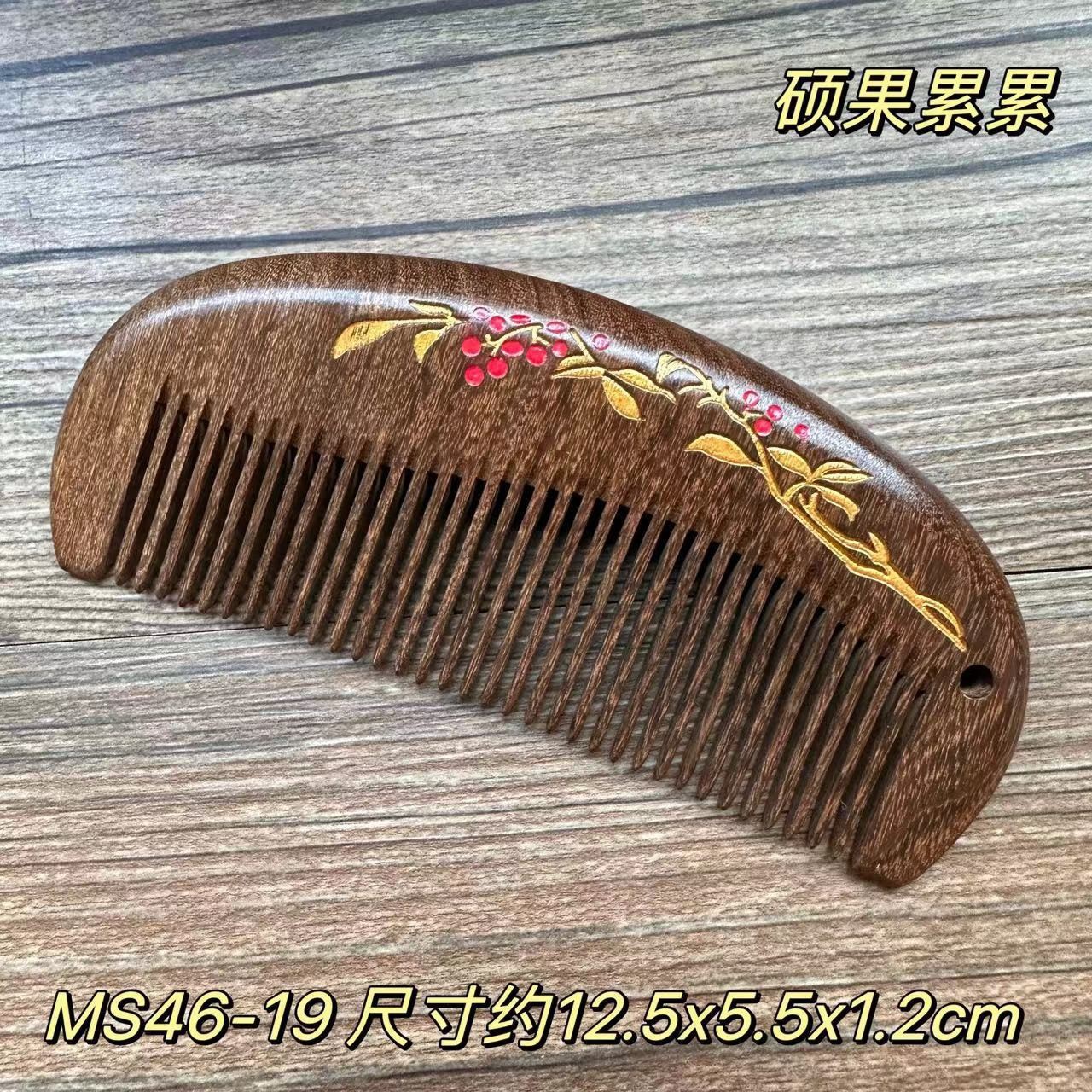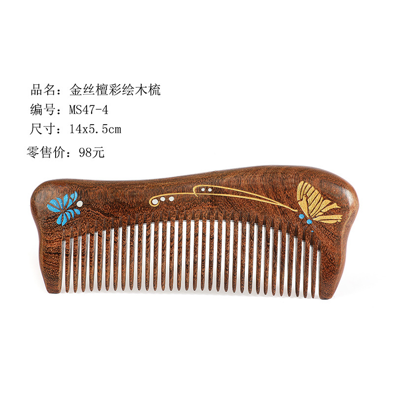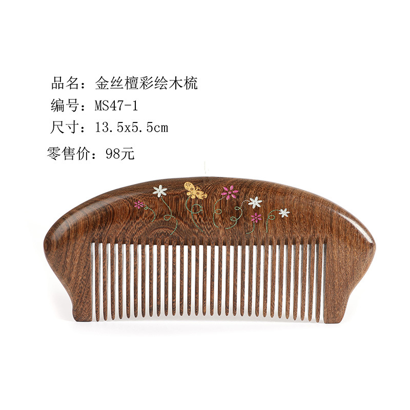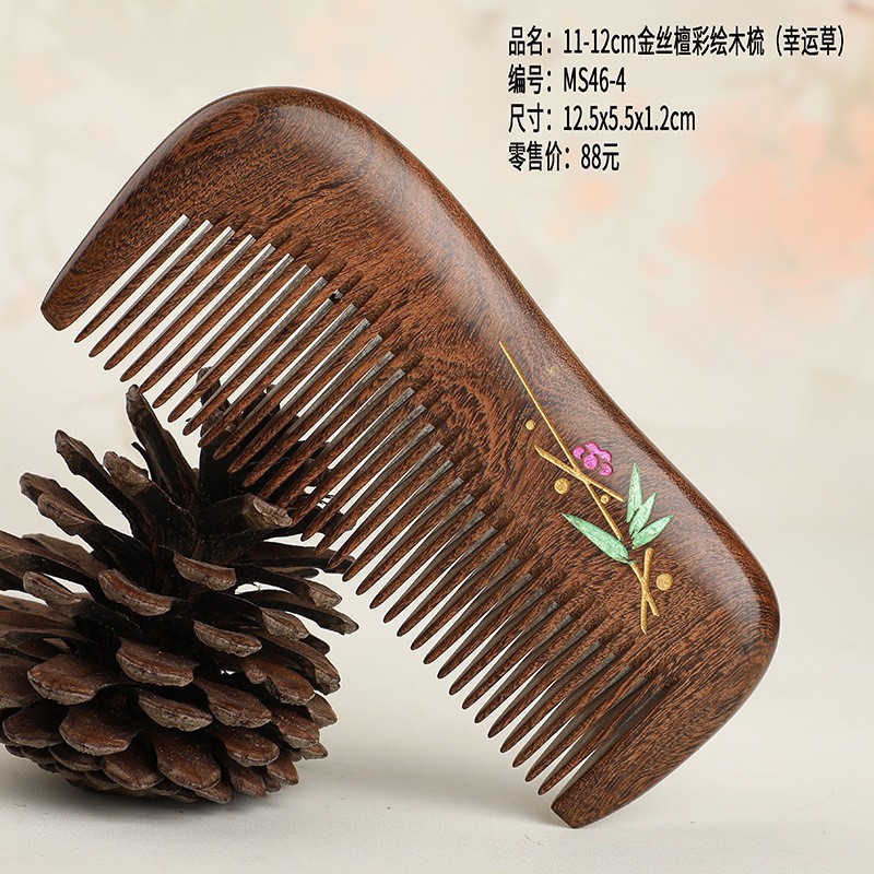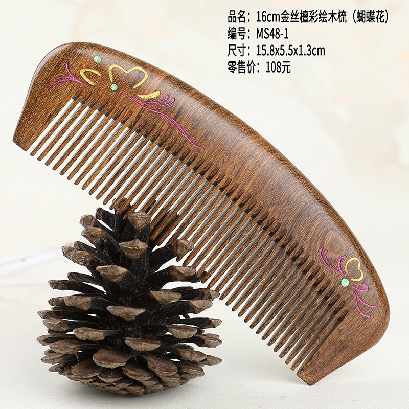 天然金丝檀木梳 手工彩绘漆艺梳子批发 整料实木按摩家用木质梳子