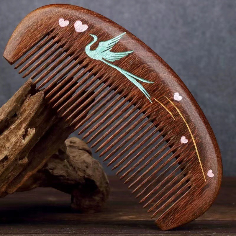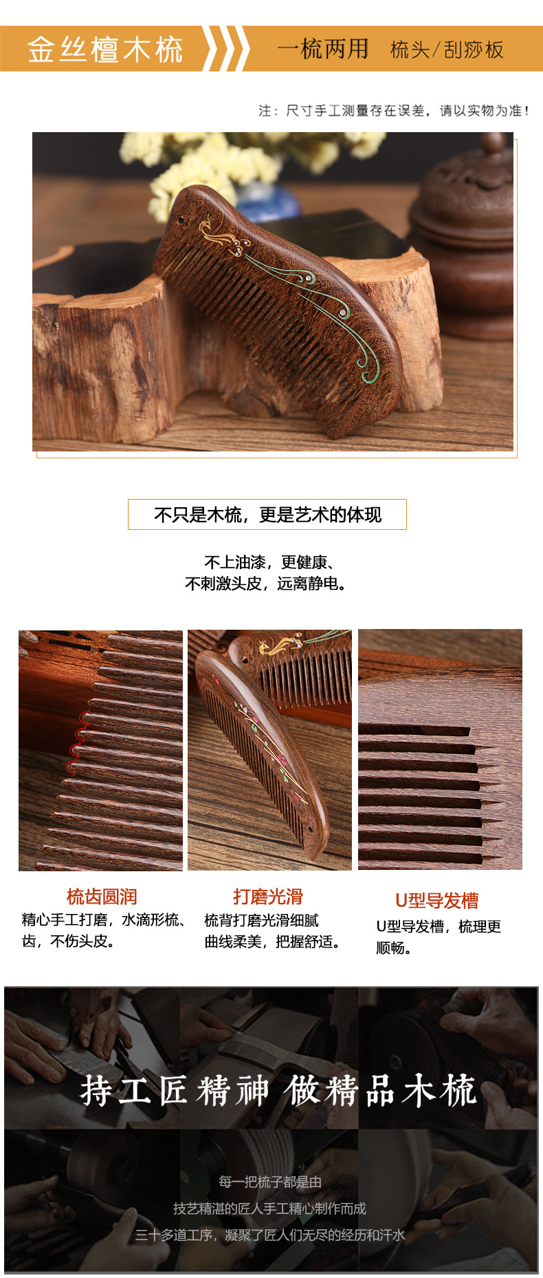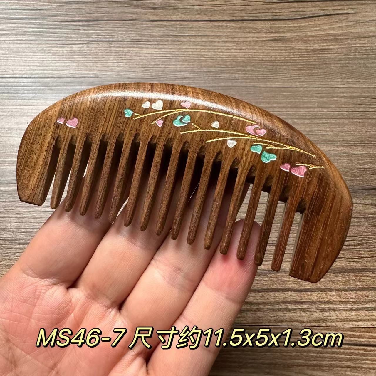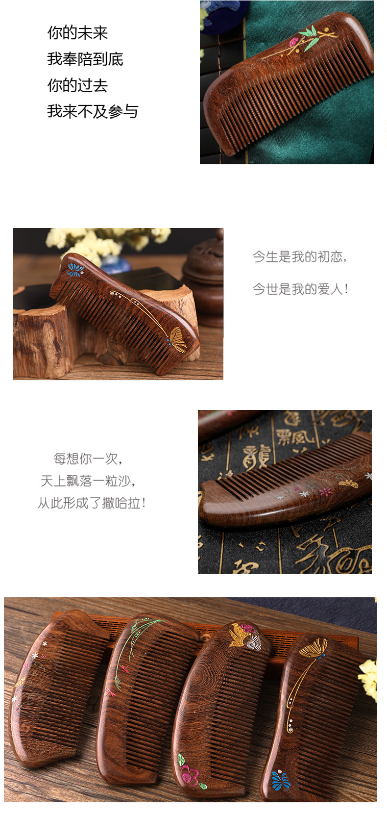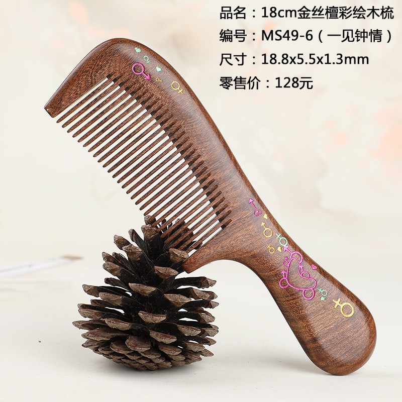 天然金丝檀木梳 手工彩绘漆艺梳子批发 整料实木按摩家用木质梳子