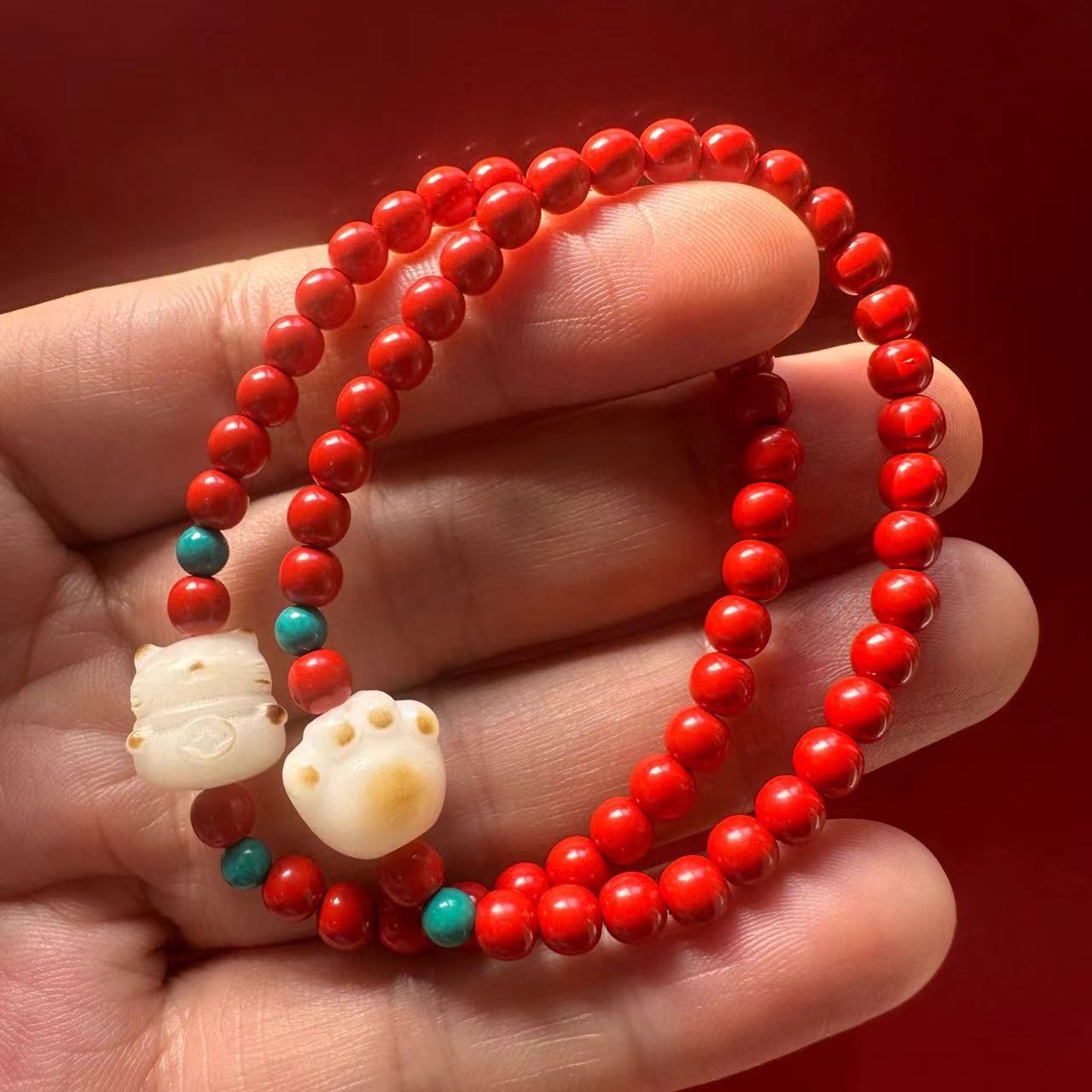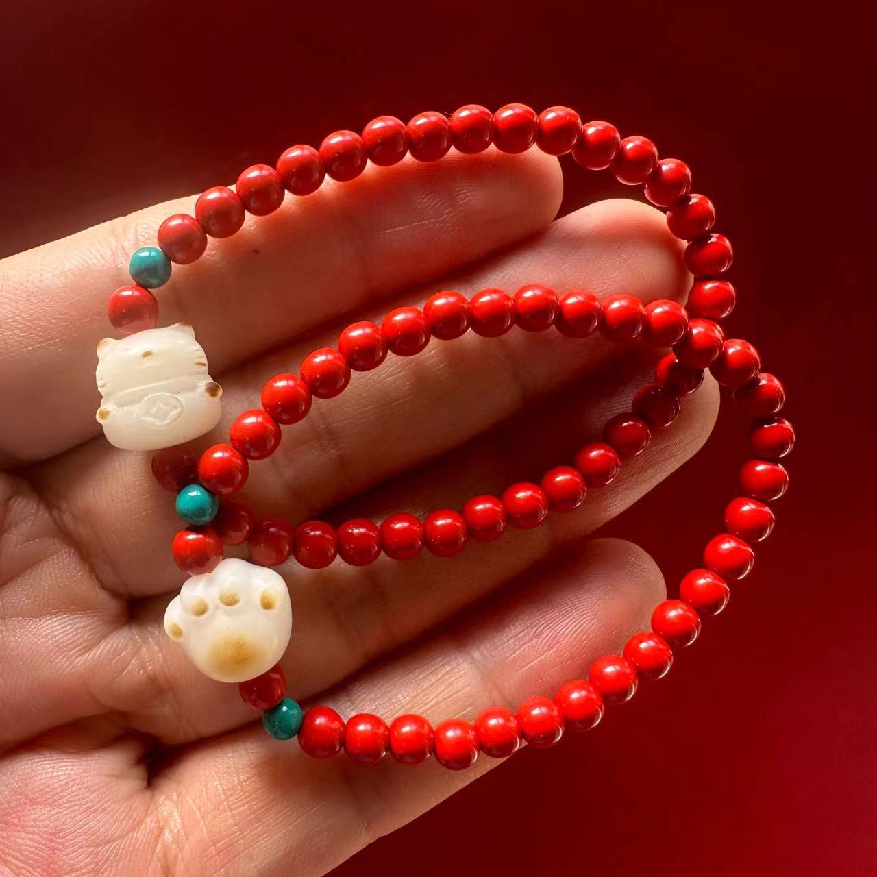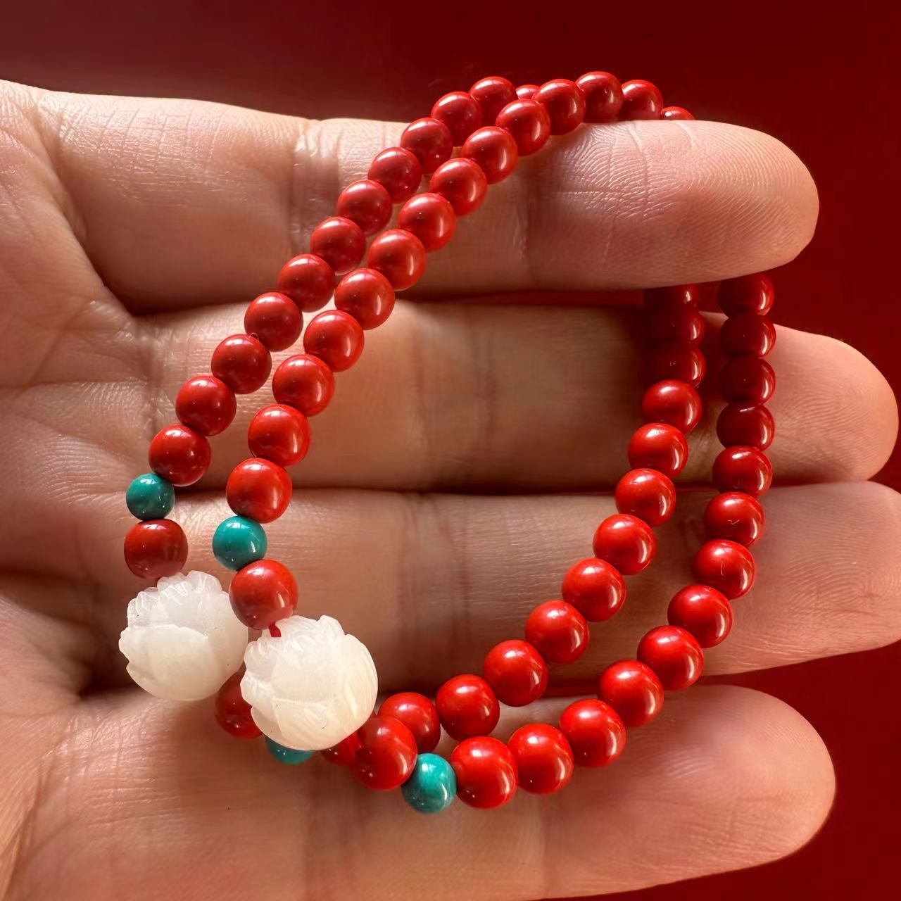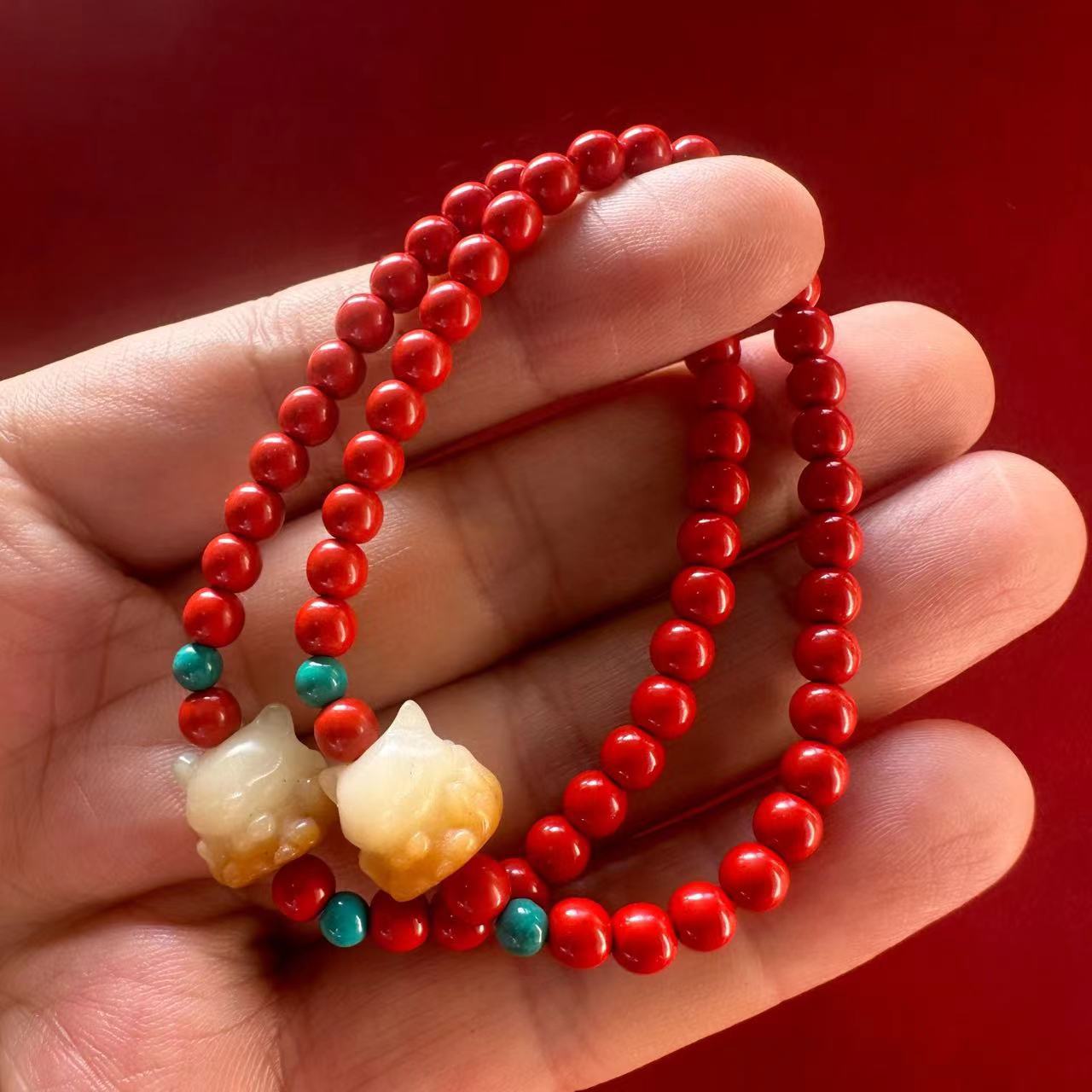 朱砂手串红砂手链念珠串珠饰品夏季复古手饰民族风文玩佛珠批发