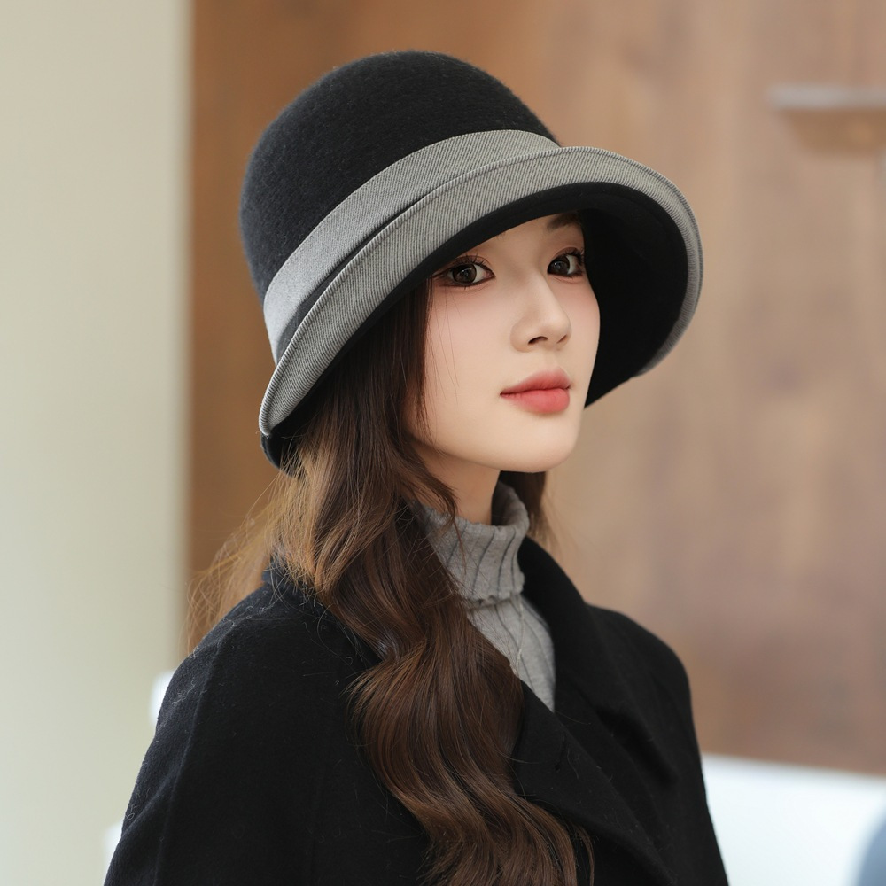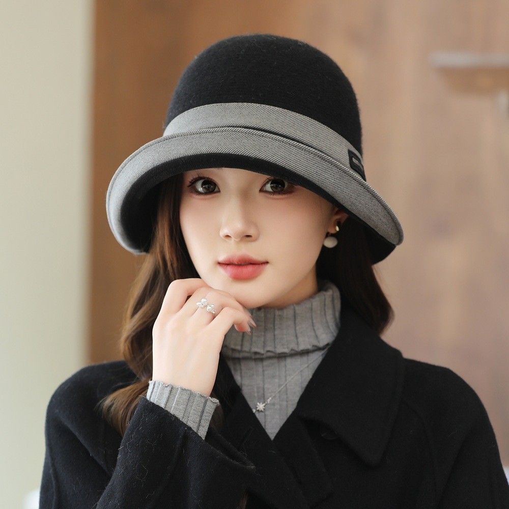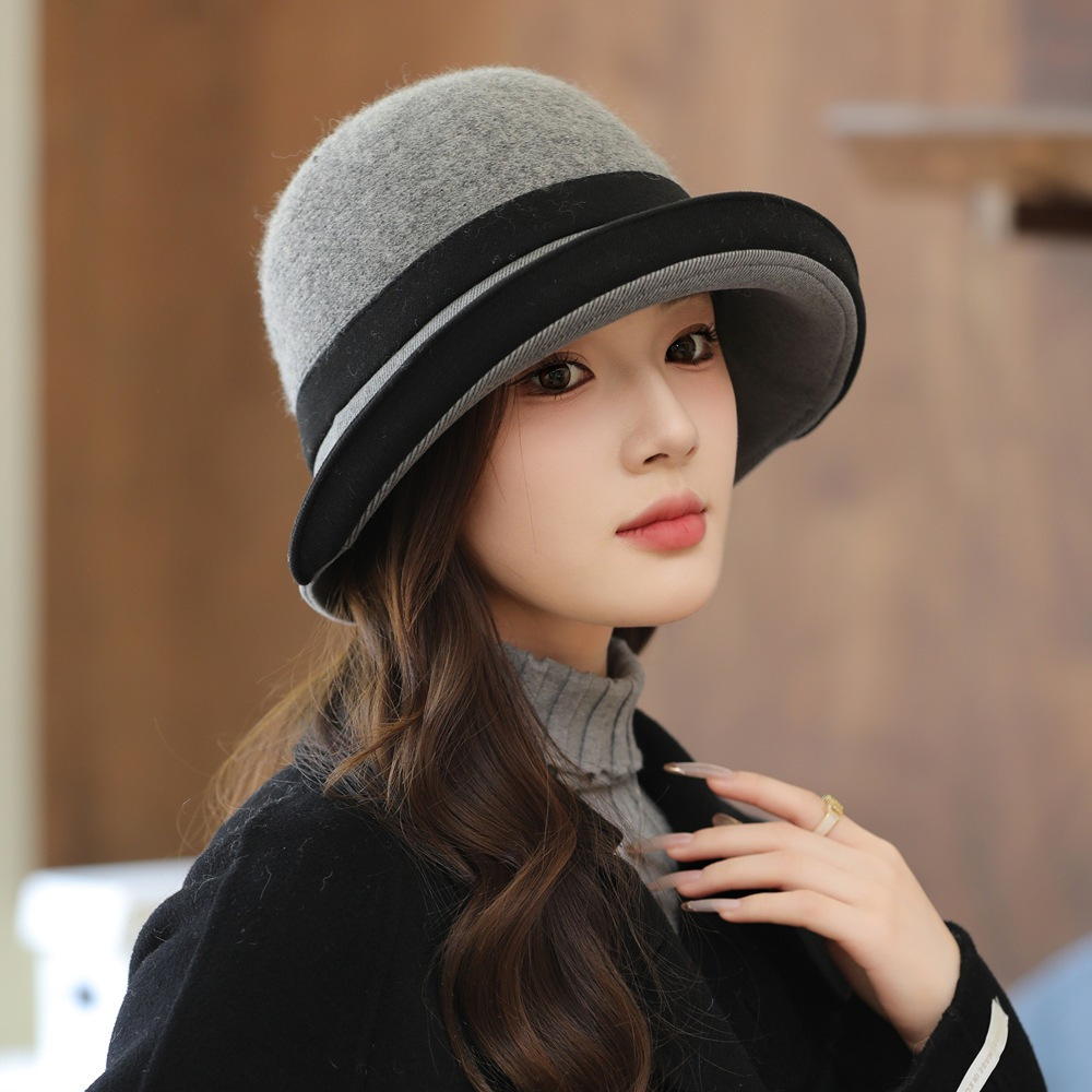 复古羊毛呢盆帽女2024年新款秋冬季优雅气质礼帽女士渔夫帽