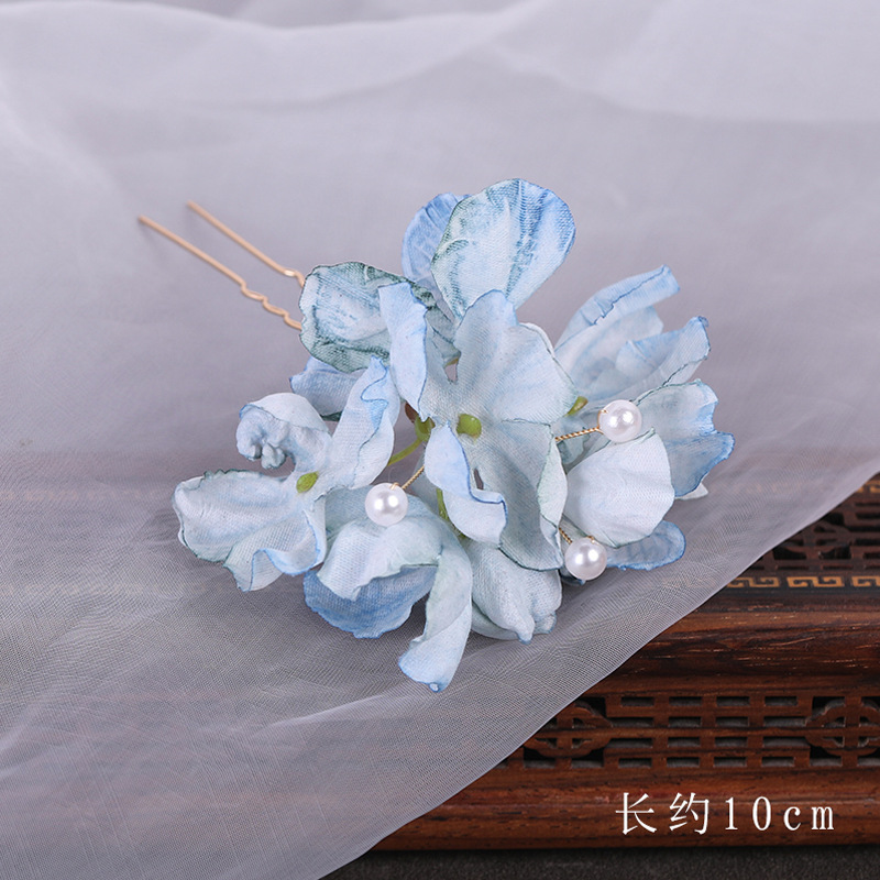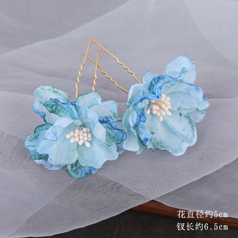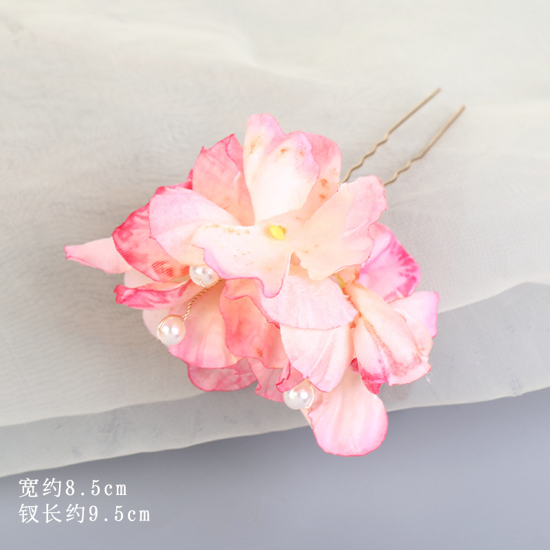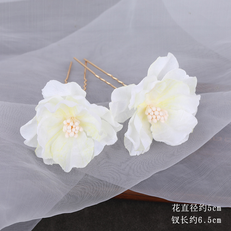 古风绢花头饰 烫花小发钗汉服发饰 花朵发簪U钗儿童头钗干花配饰
