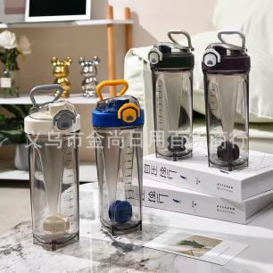 家用运动水杯新款2023简约学生便携健身房塑料杯子夏季户外有盖