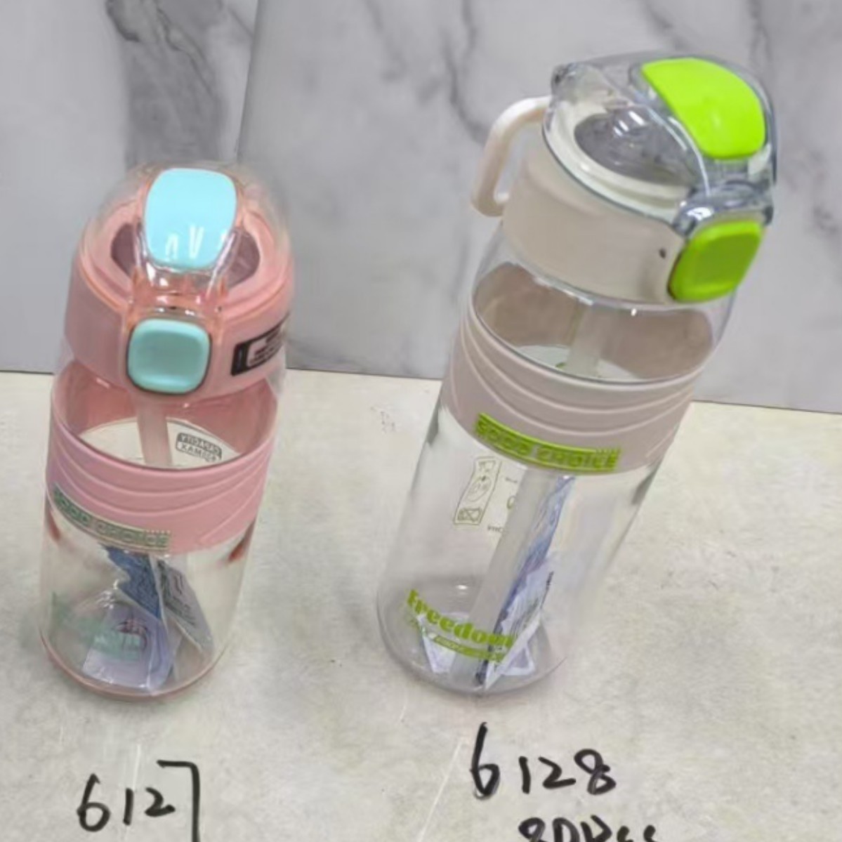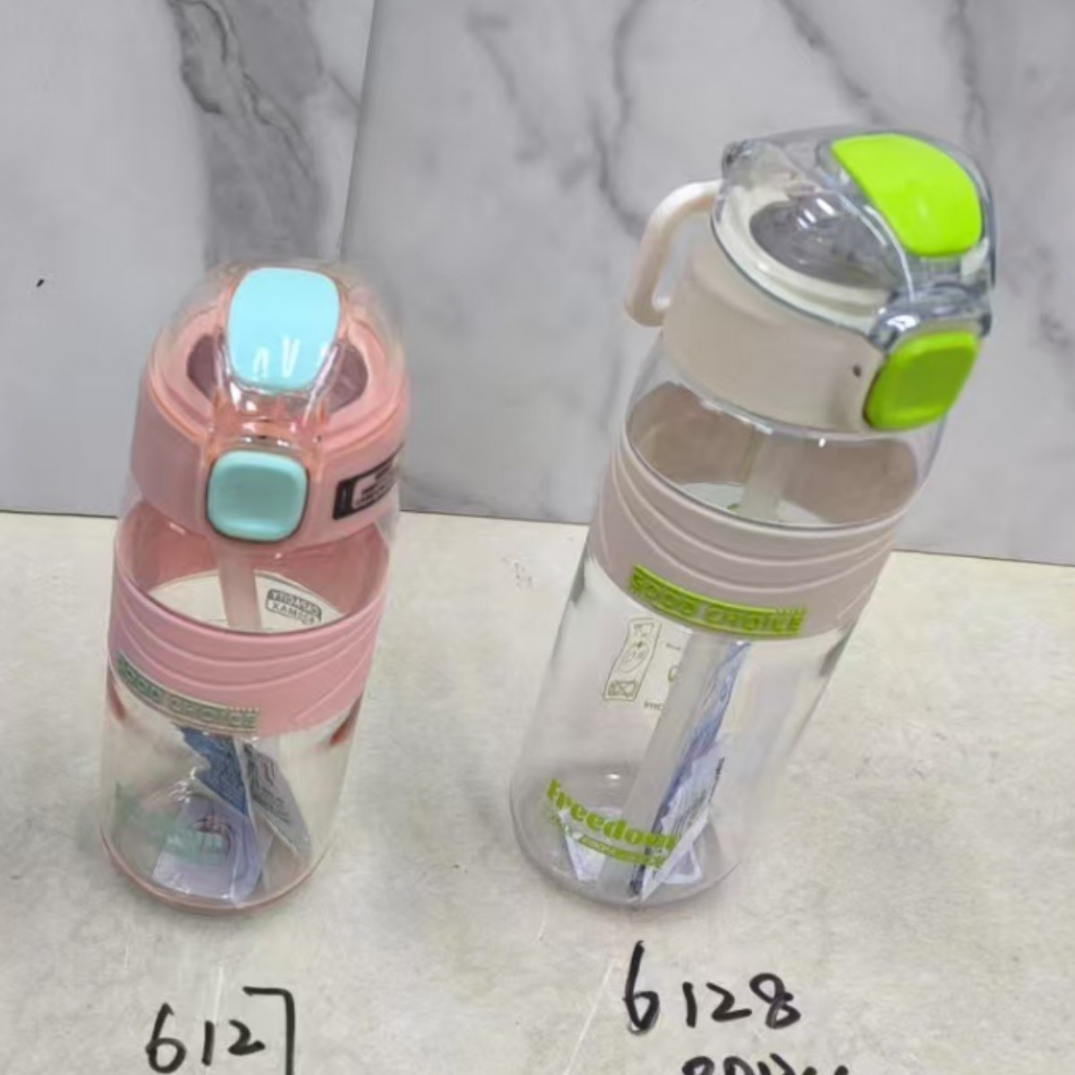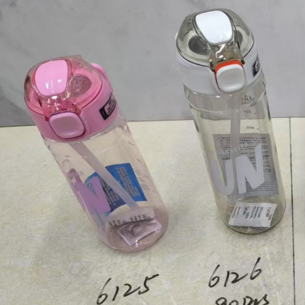 多款式简约撞色字母水杯手提式便携吸管杯学生塑料杯户外运动水壶