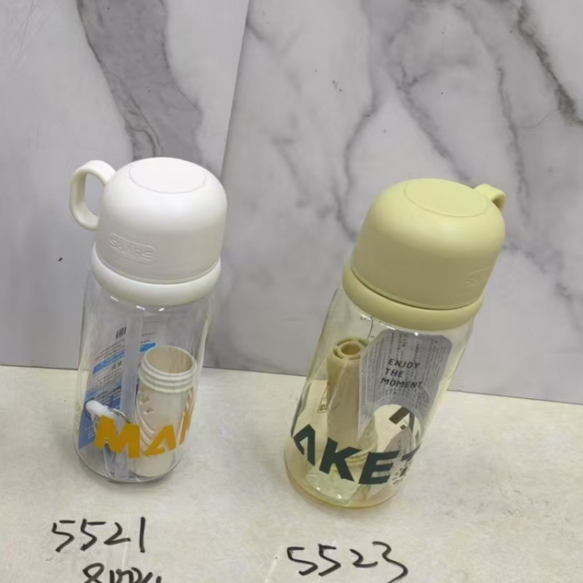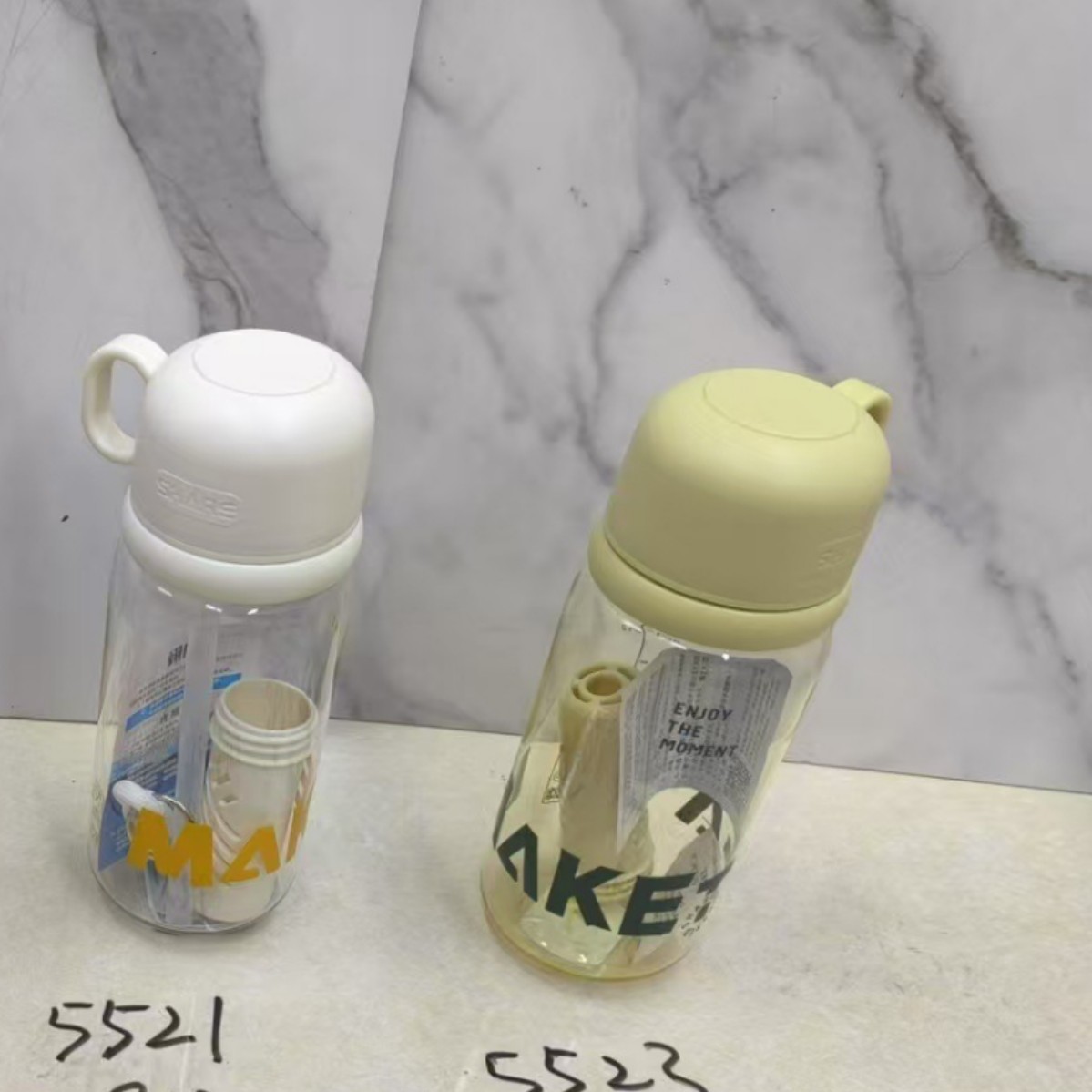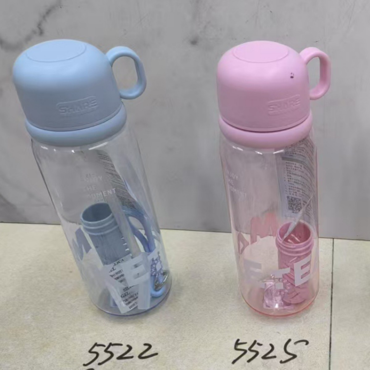 多款式简约撞色字母水杯手提式便携吸管杯学生塑料杯户外运动水壶