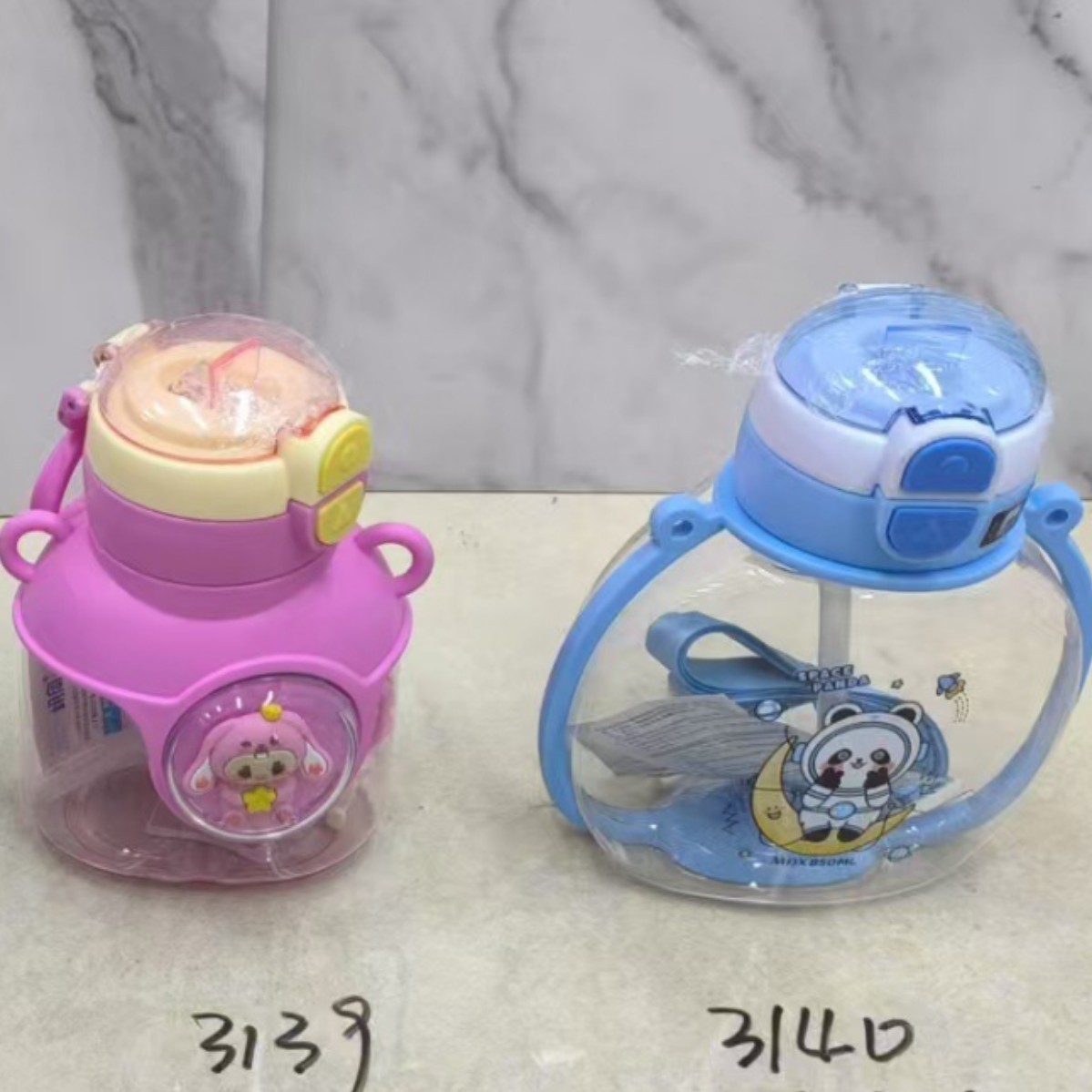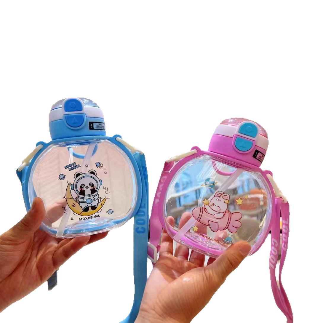 春游户外野餐露营好看斜跨背带儿童水杯小肚杯新款塑料吸管
