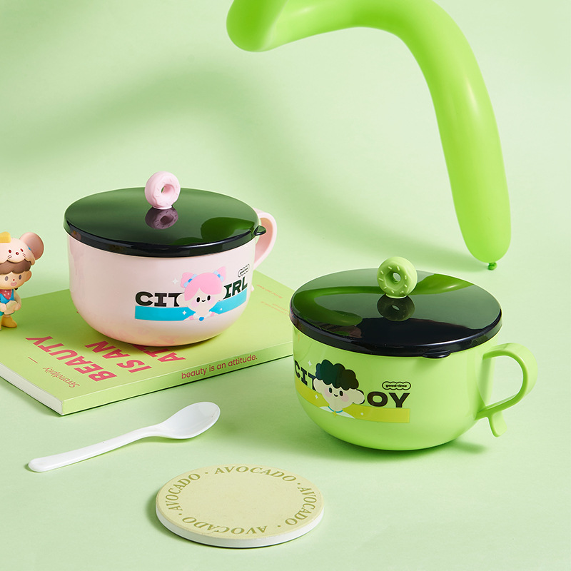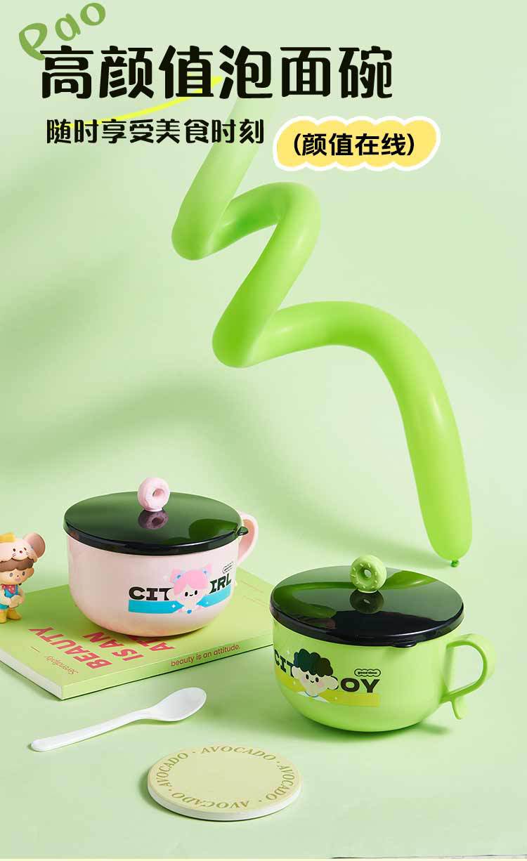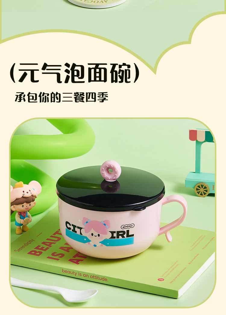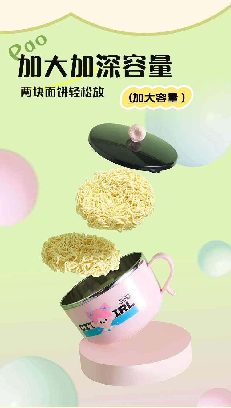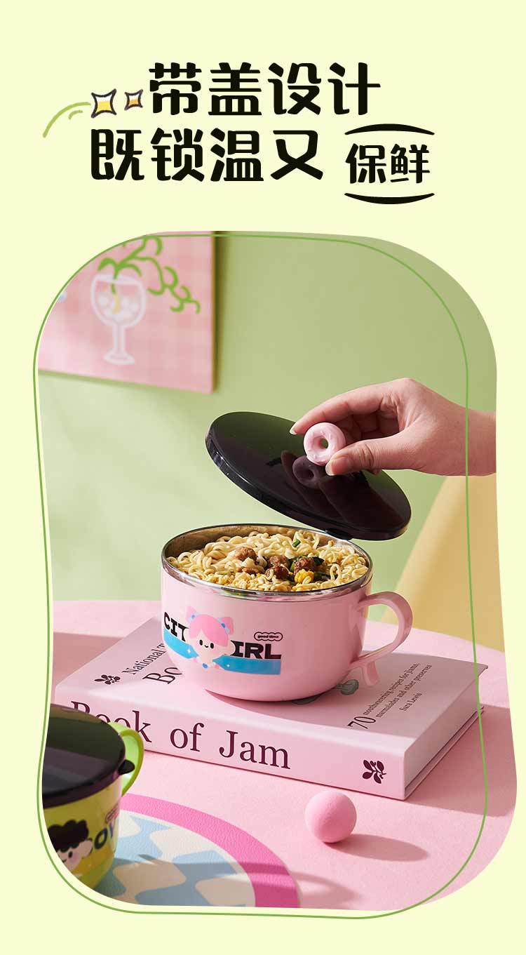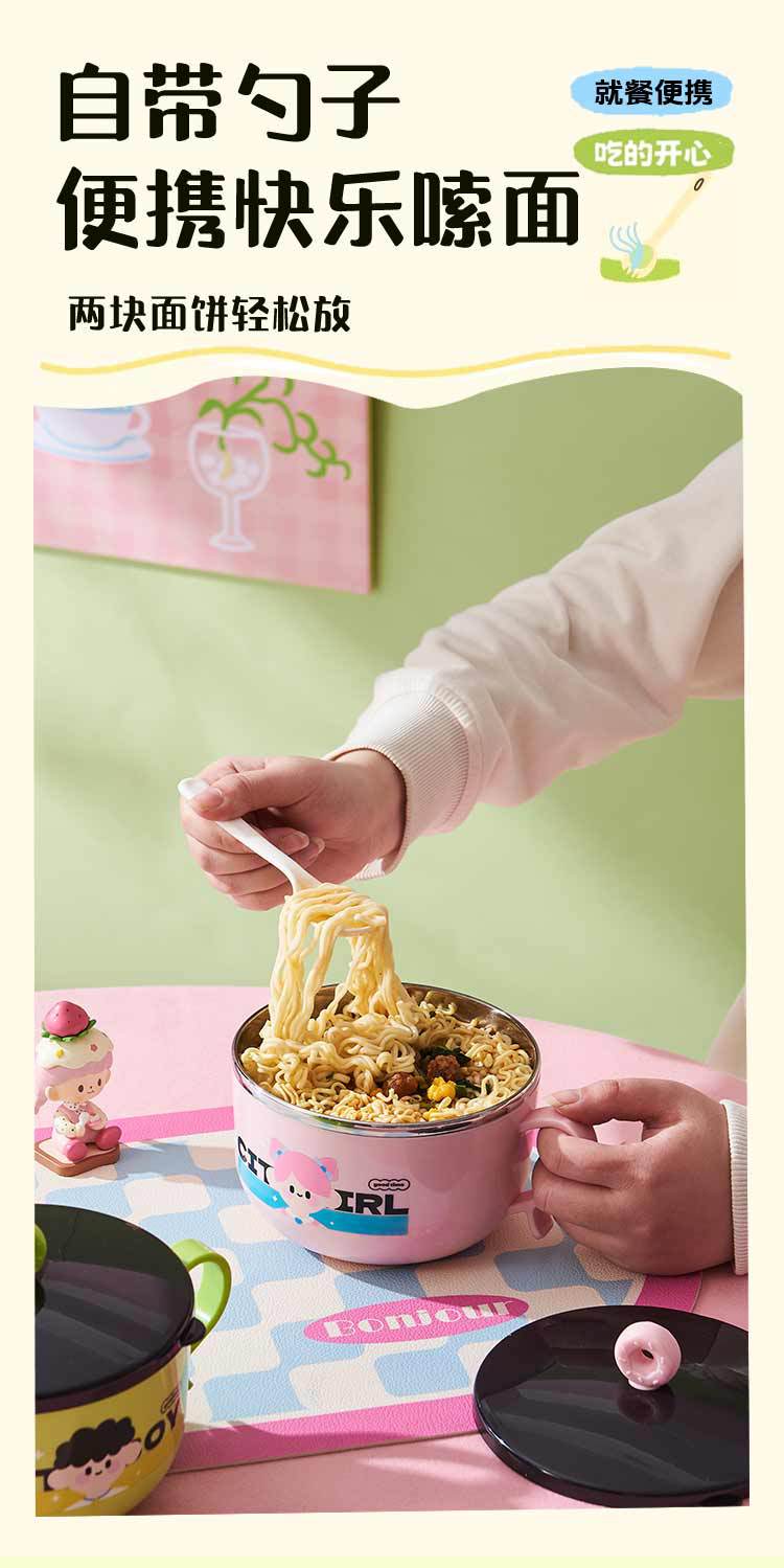 卡通可爱宿舍学生带盖泡面神器户外便携不锈钢打饭方便面汤碗