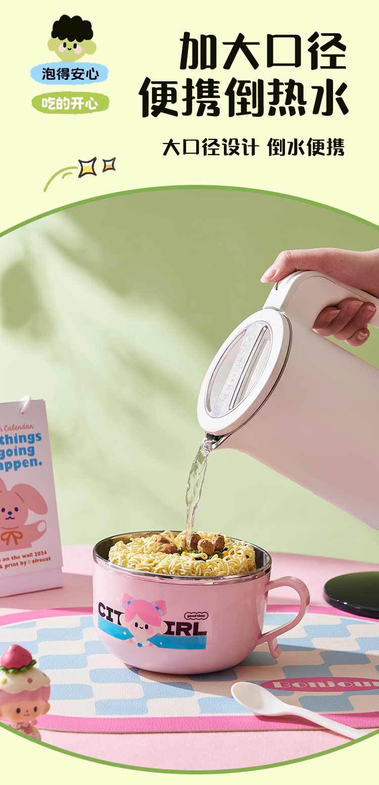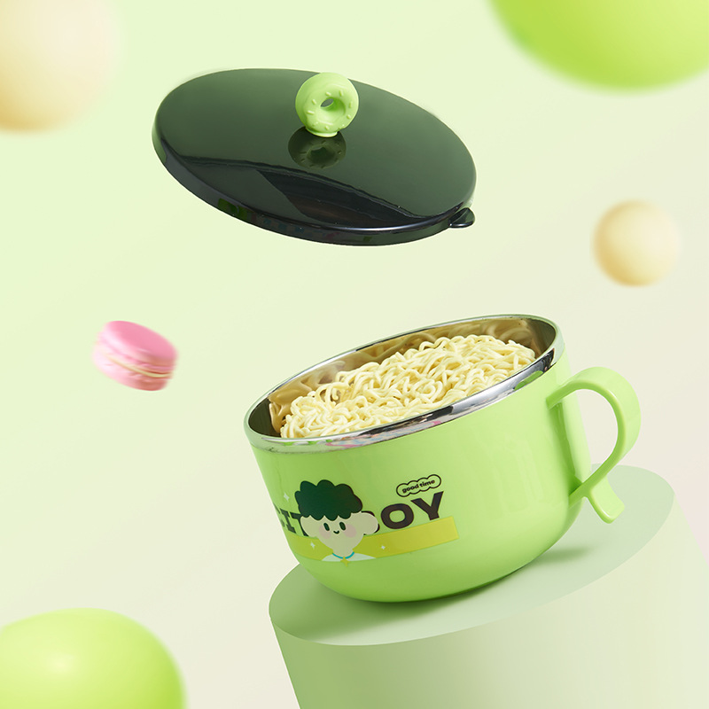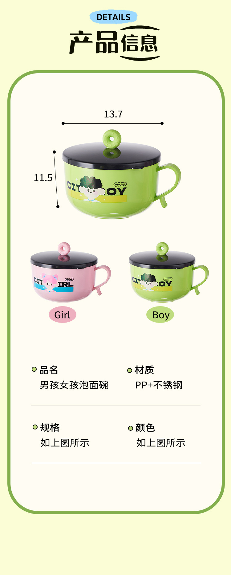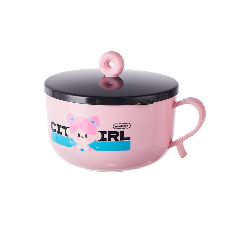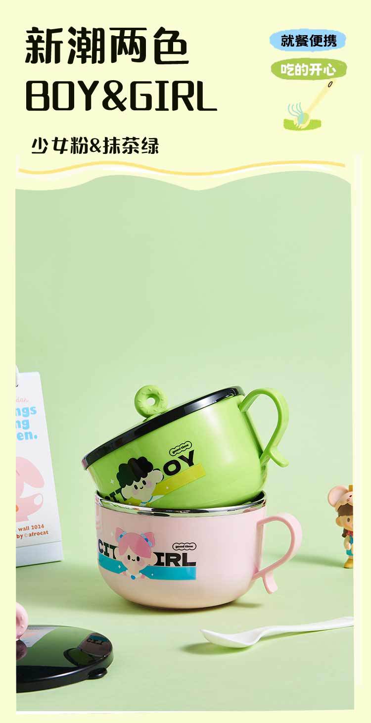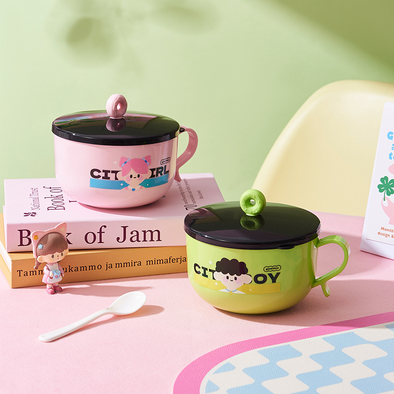 卡通可爱宿舍学生带盖泡面神器户外便携不锈钢打饭方便面汤碗