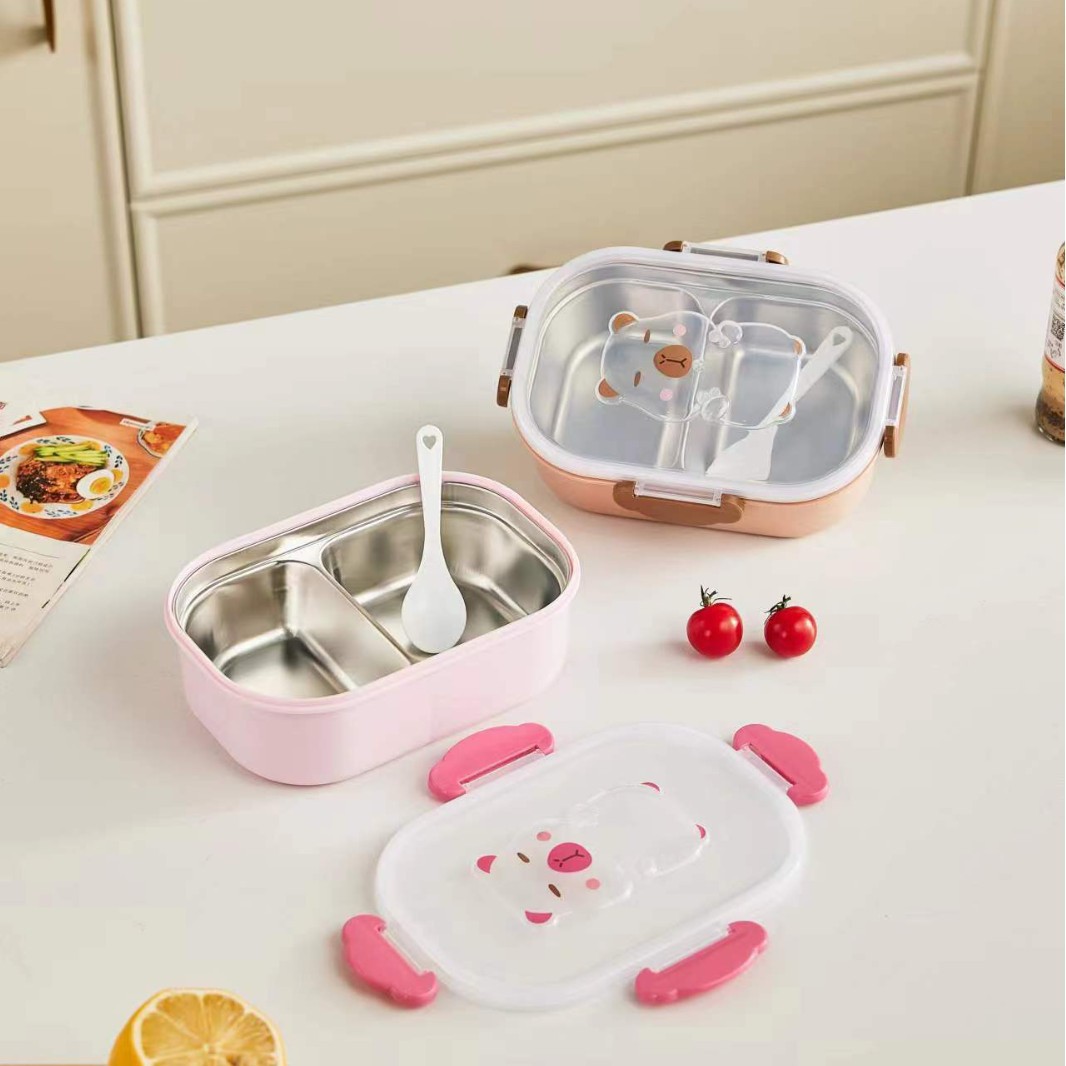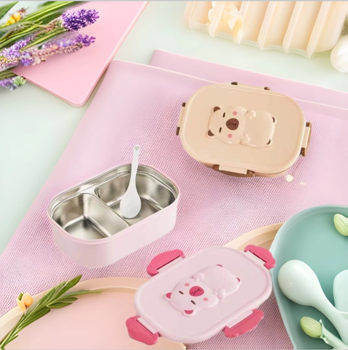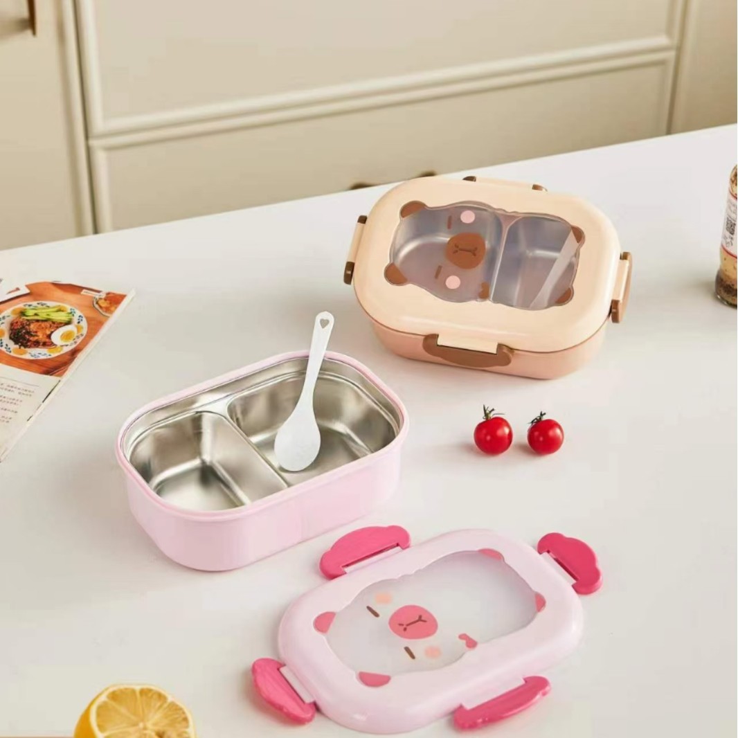 卡皮巴拉食品级儿童不锈钢饭盒分格保温可爱萌趣卡通卡皮巴拉饭盒