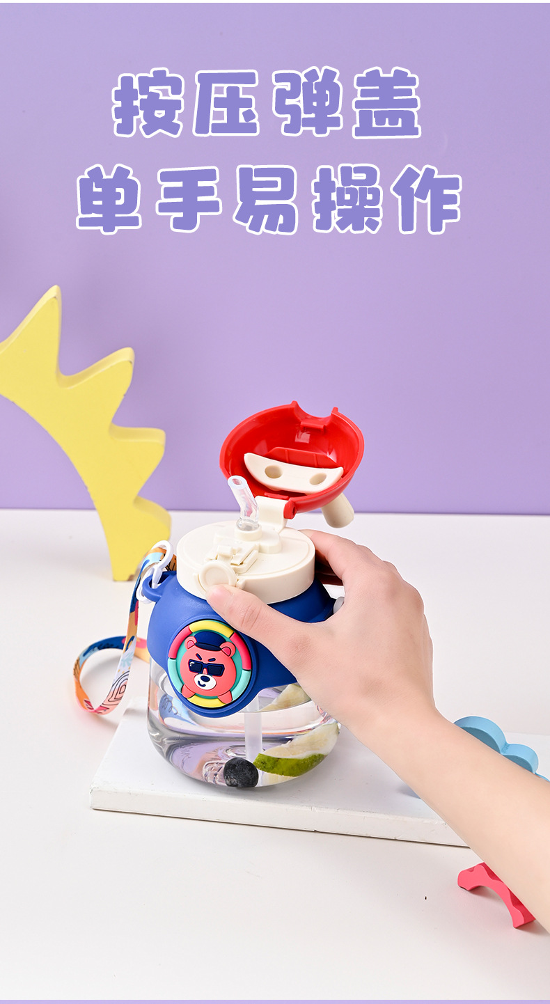 大肚杯子儿童学生便携塑料背带吸管水杯新款夏季卡通高颜值大容量