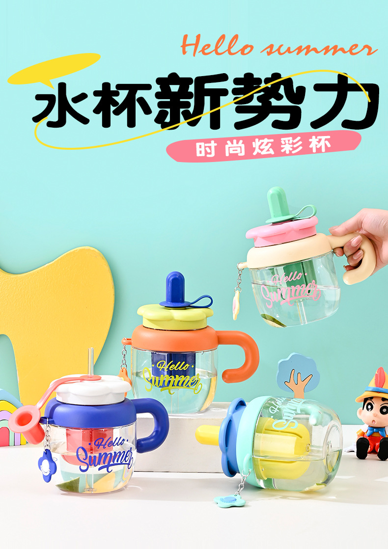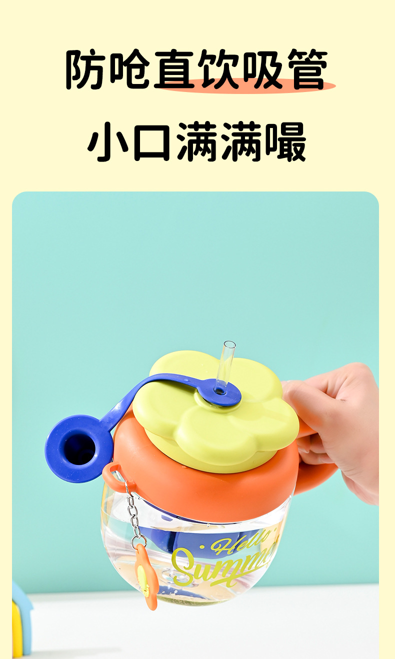可爱水杯带吸管ins高颜值夏季花茶水杯塑料杯顿顿桶奶茶杯肚肚杯