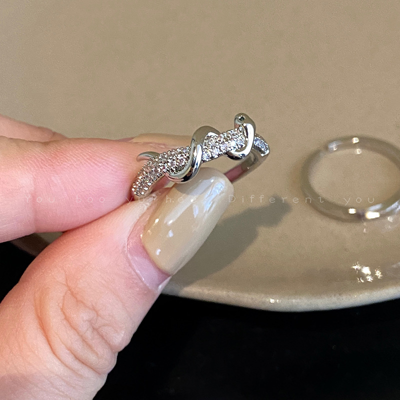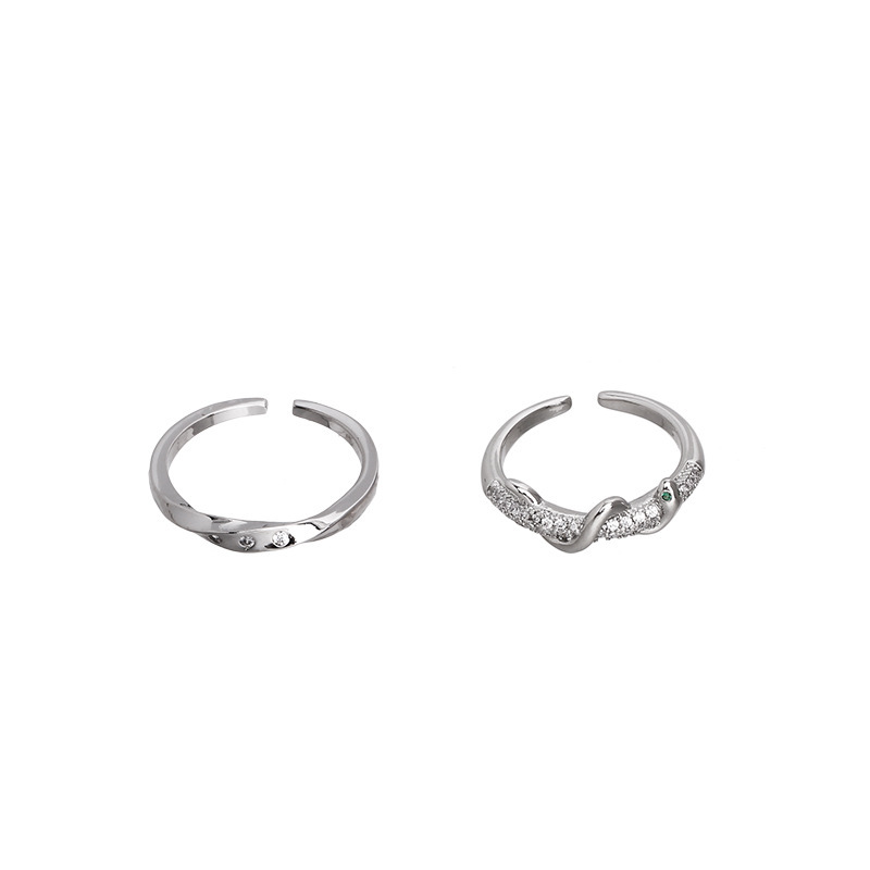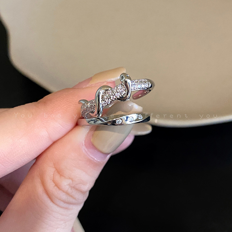 轻奢小众超闪锆石满钻蛇形戒指女百搭气质高级感开口食指戒指环