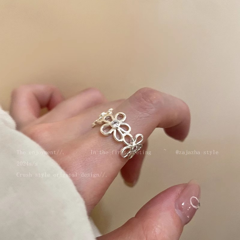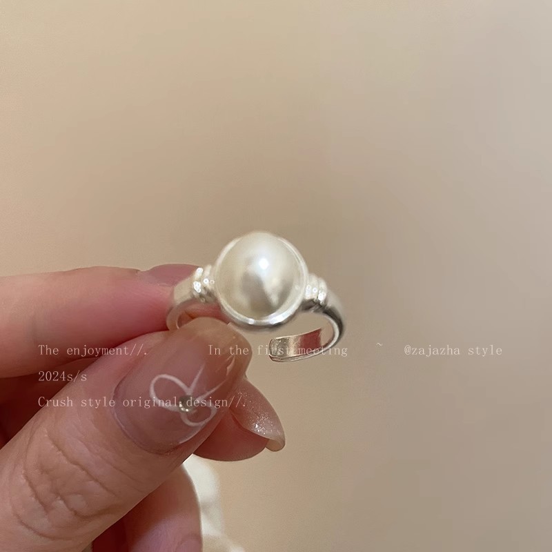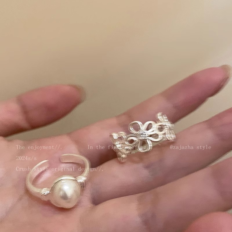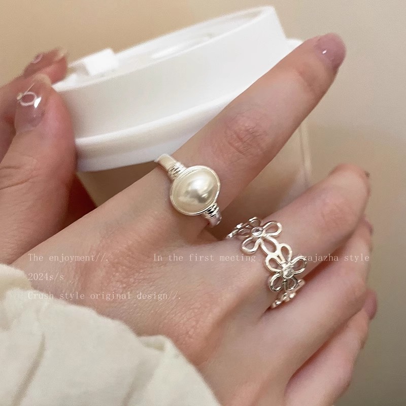 轻奢小众珍珠花朵戒指女高级感百搭气质开口可调节食指戒指环批发