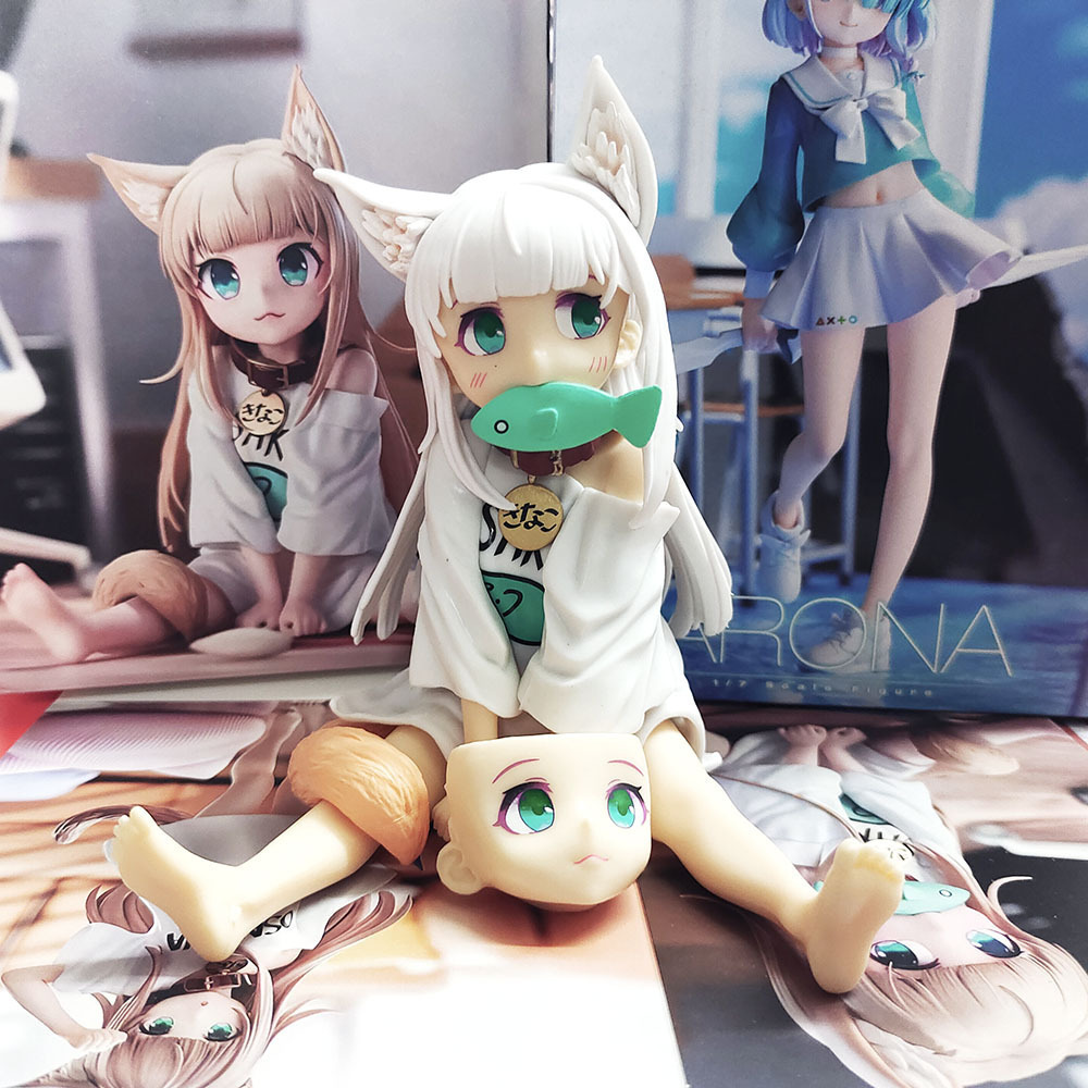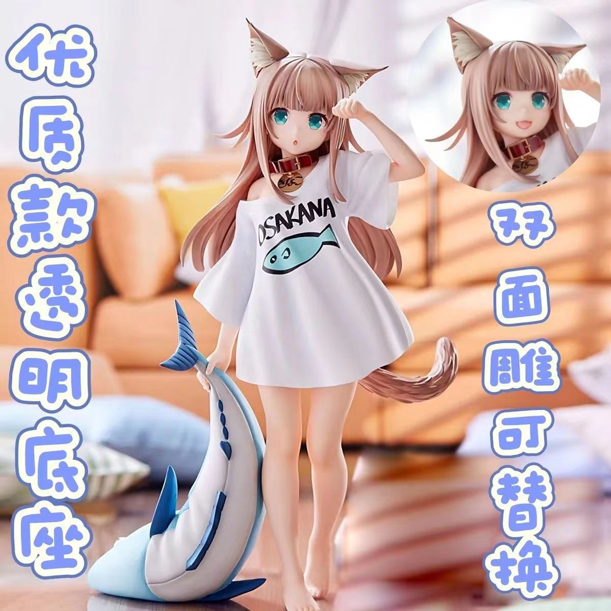 黄豆粉手办猫娘坐着吃鱼我家猫猫是可爱的女孩子摆件模型批发代发