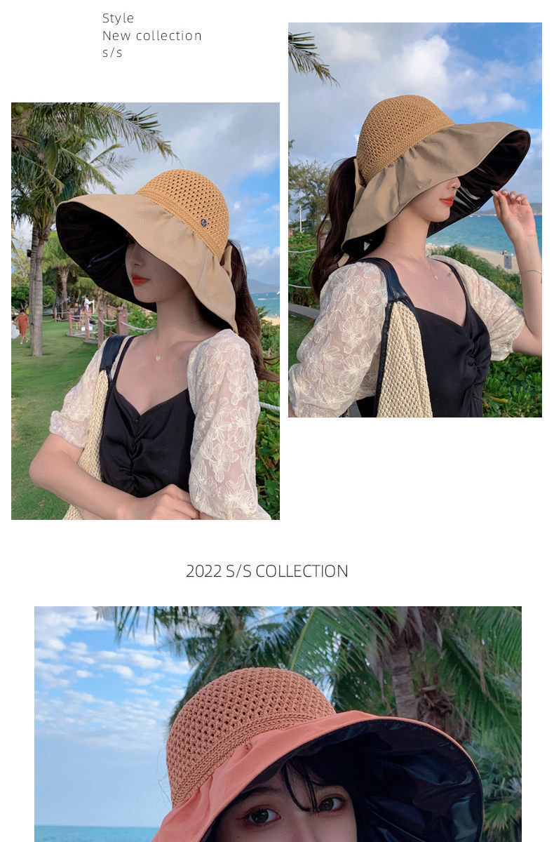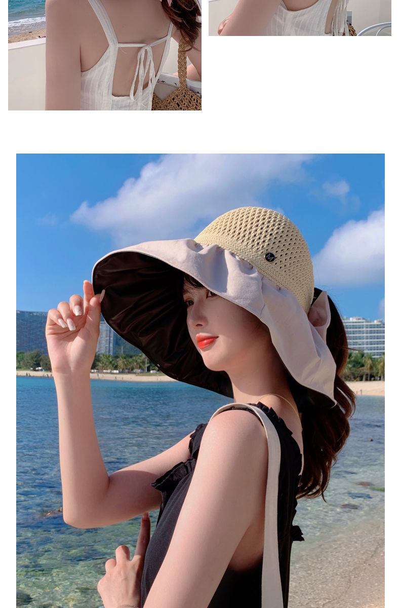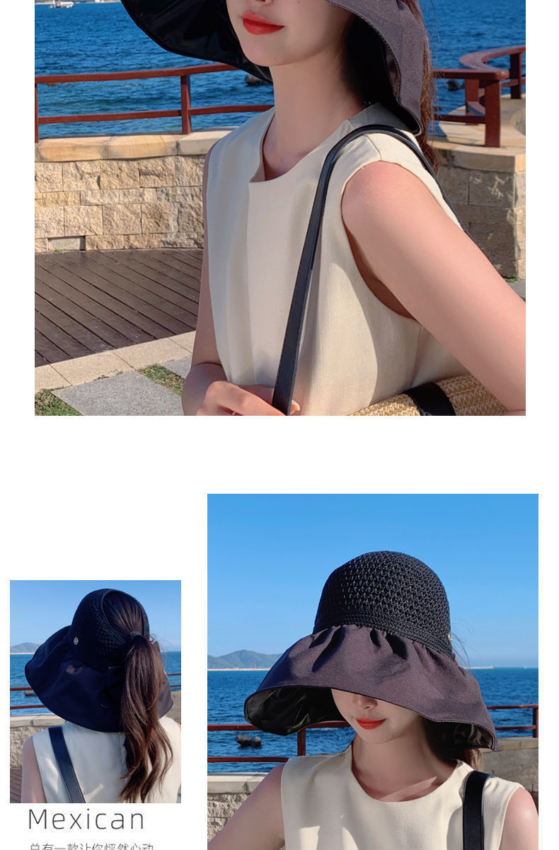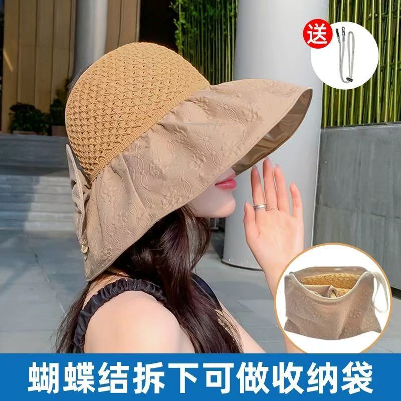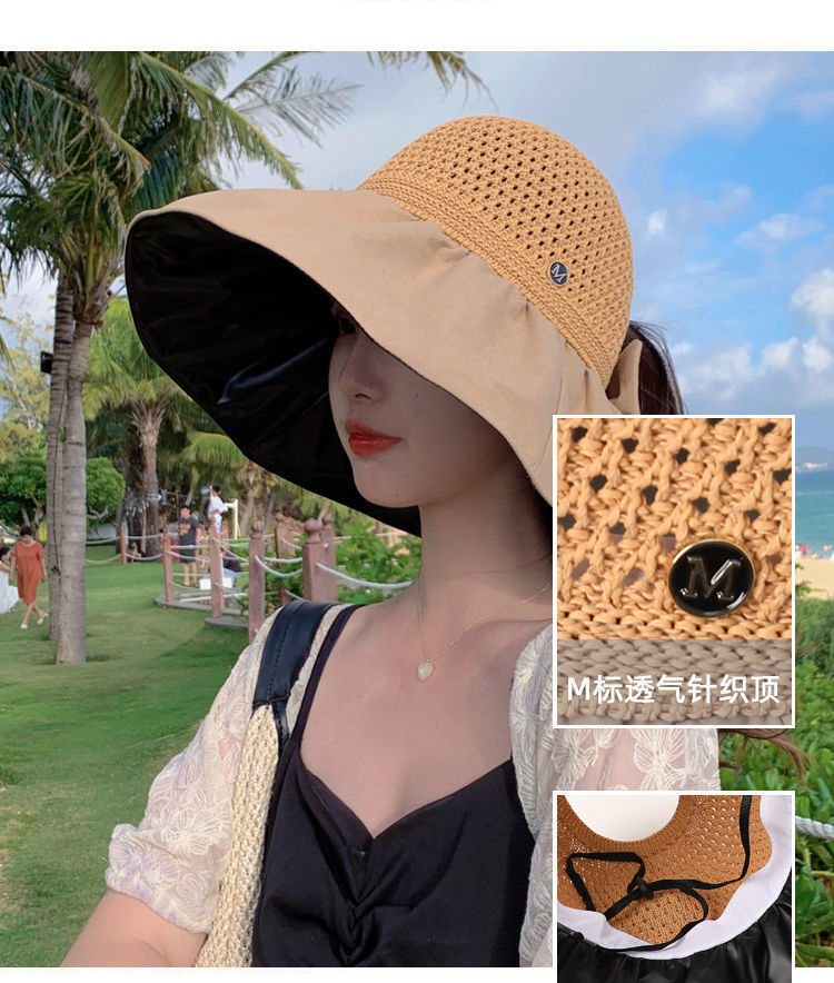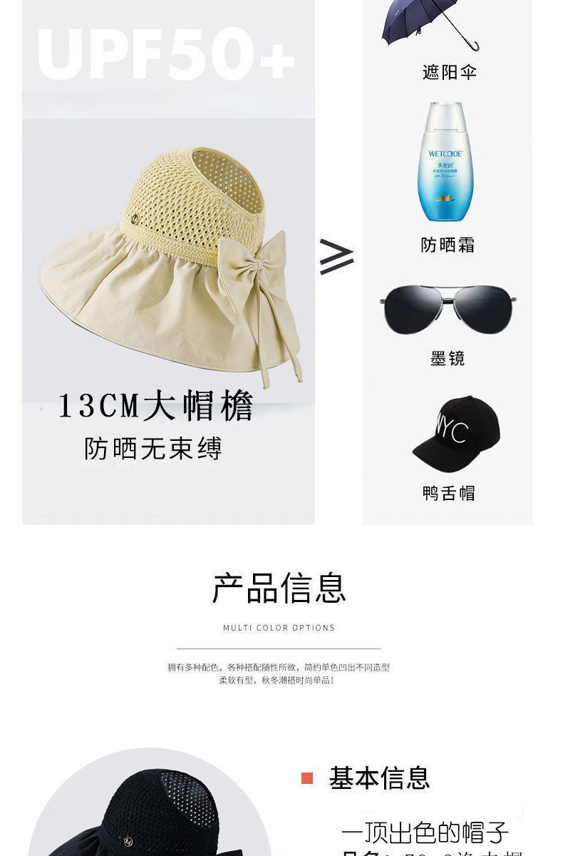 抖音爆款太阳帽女夏天M标拼接空顶大沿帽户外防紫外线遮阳帽韩版