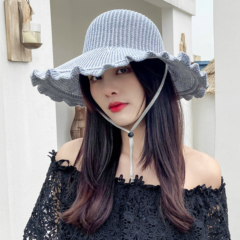 波浪边空顶帽女夏季户外防晒遮阳帽出游沙滩太阳帽卷卷大沿草帽子