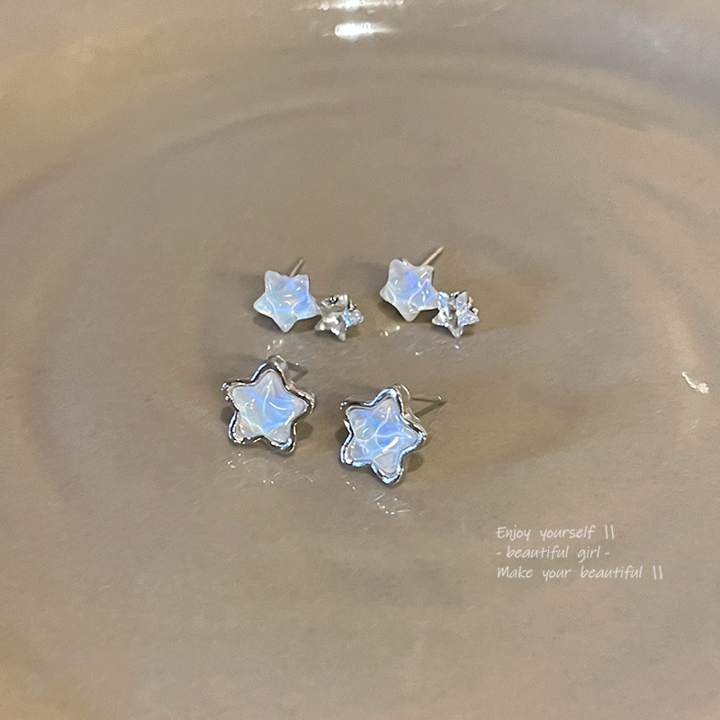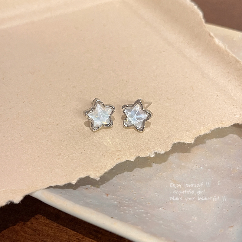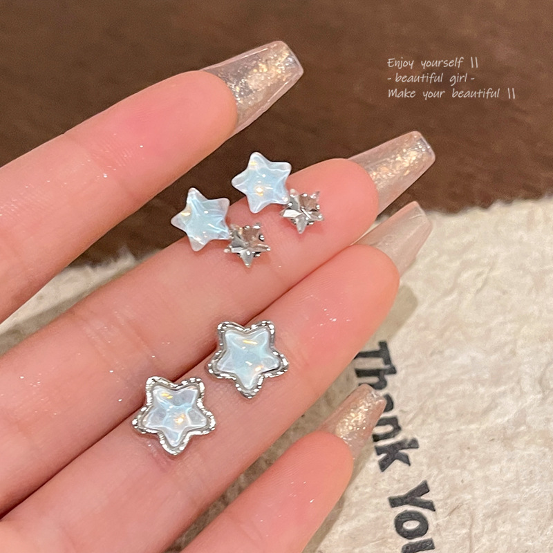 S925银针小清新渐变梦幻蓝色五角星耳钉女轻奢小众高级感星星耳环