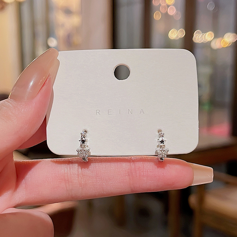轻奢小众精致微镶锆石星星耳扣耳钉女ins潮百搭气质网红耳环耳饰