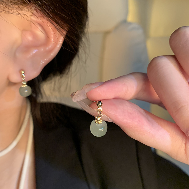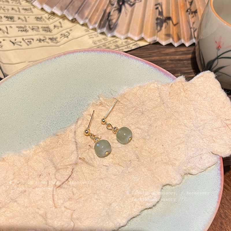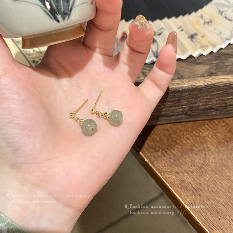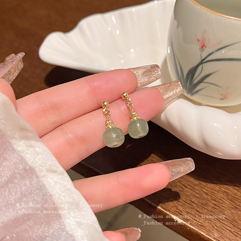 新中式中古风仿玉髓耳钉女小巧精致水滴形耳环女百搭气质耳饰批发