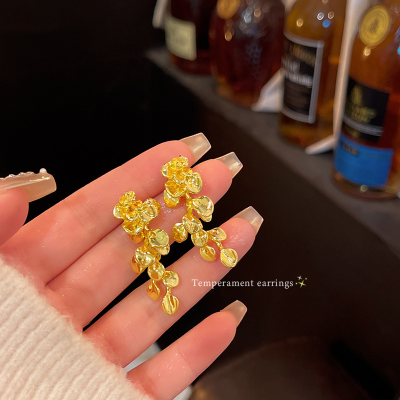 轻奢小众高级金属感叶子耳环女时尚百搭气质长款流苏花朵耳钉耳饰
