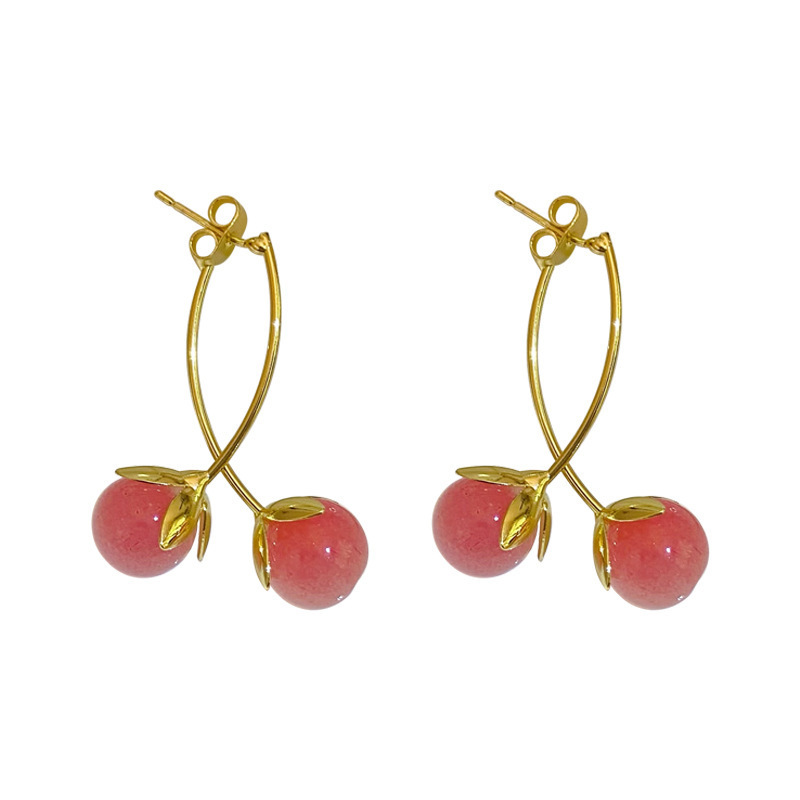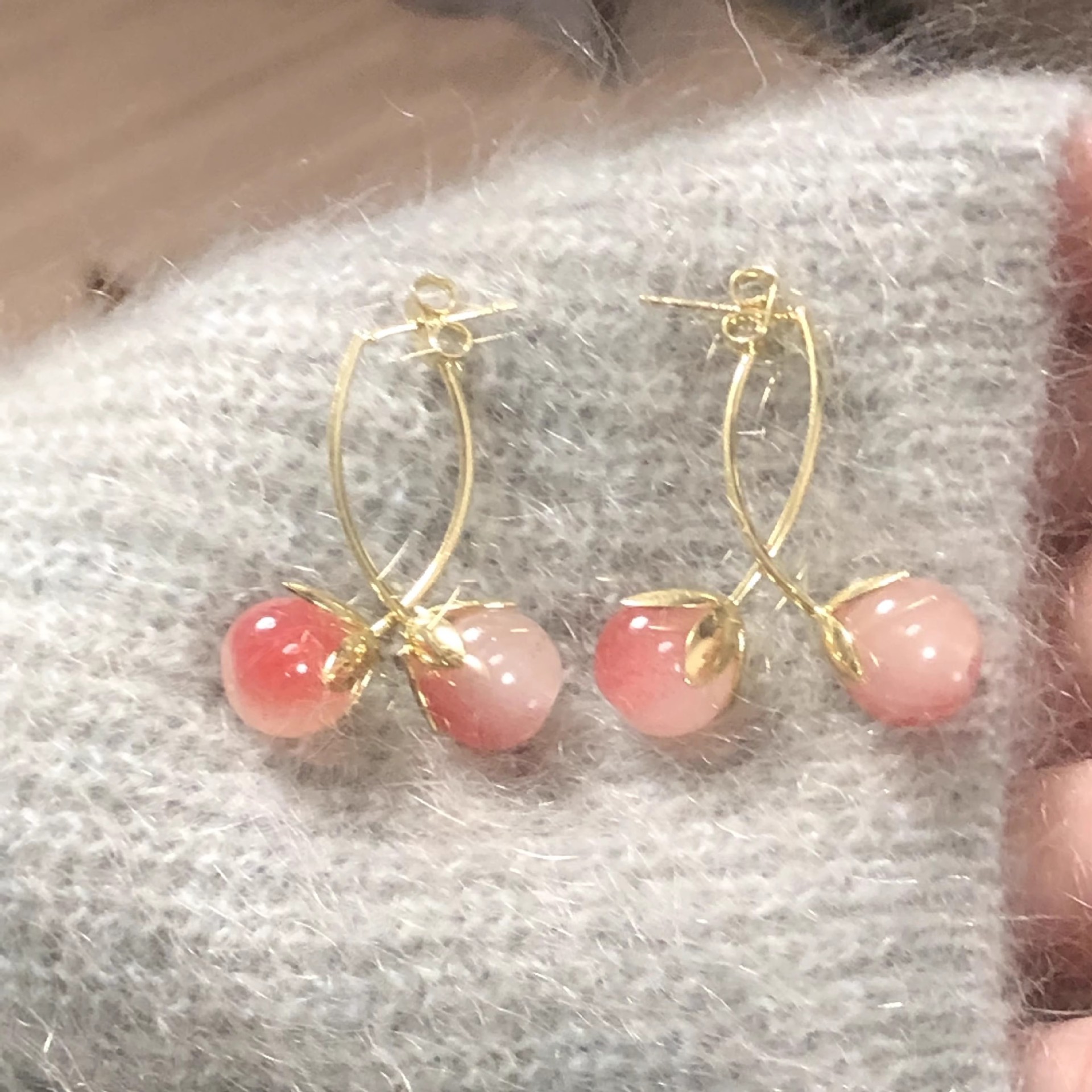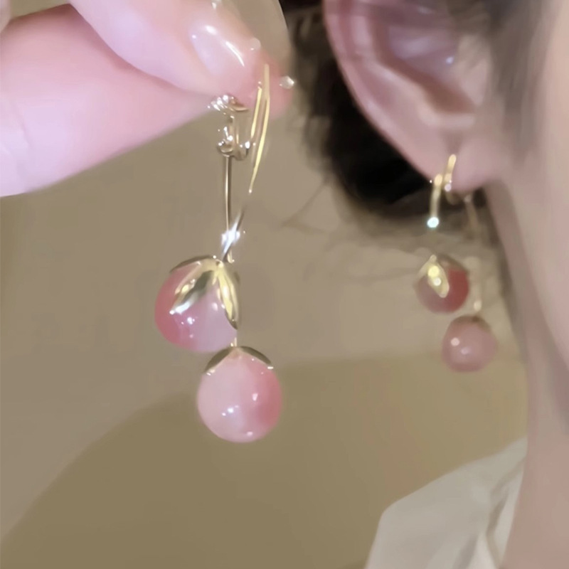 超仙甜美粉色小番茄耳钉女ins潮可爱百搭气质长款流苏耳环耳饰品