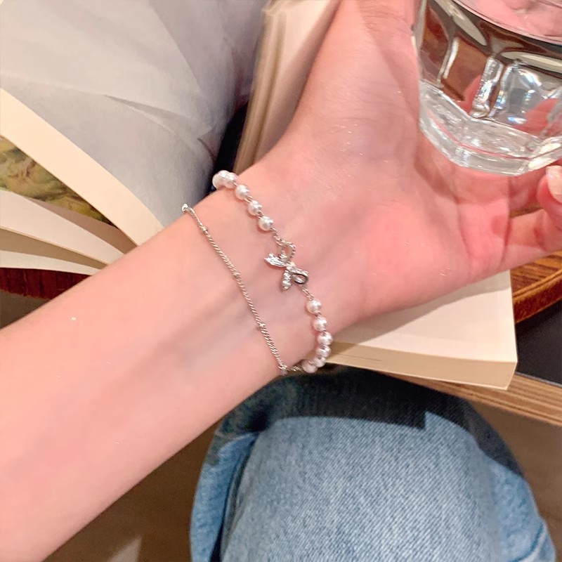 韩国风个性高级珍珠手链女ins小众设计网红时尚气质钛钢手串手饰