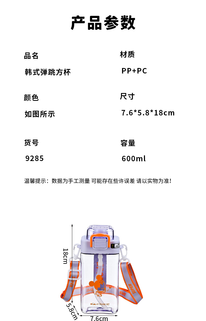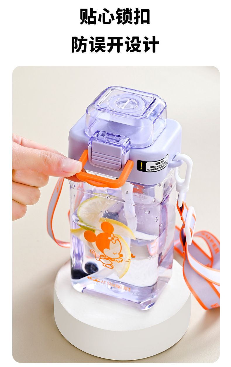 运动弹跳盖吸管提绳大容量可爱水杯高颜值方形耐高温便携健身