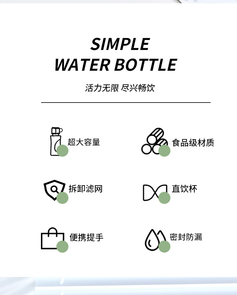 大容量运动健身男女学生带茶隔提手透明水杯简约时尚高颜值便携