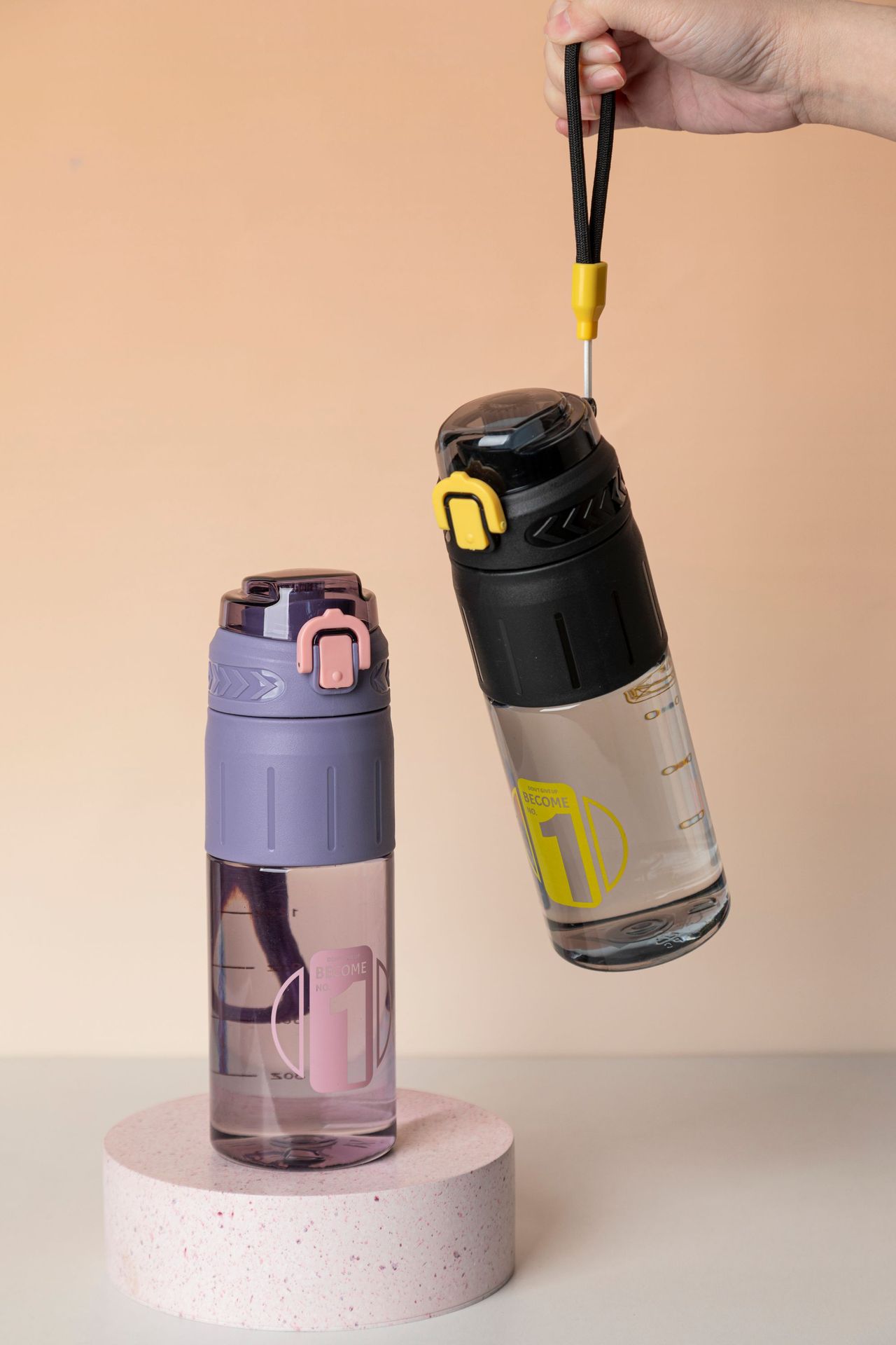 户外大容量带刻度运动水杯男女简约弹盖带茶隔便携学生直饮杯