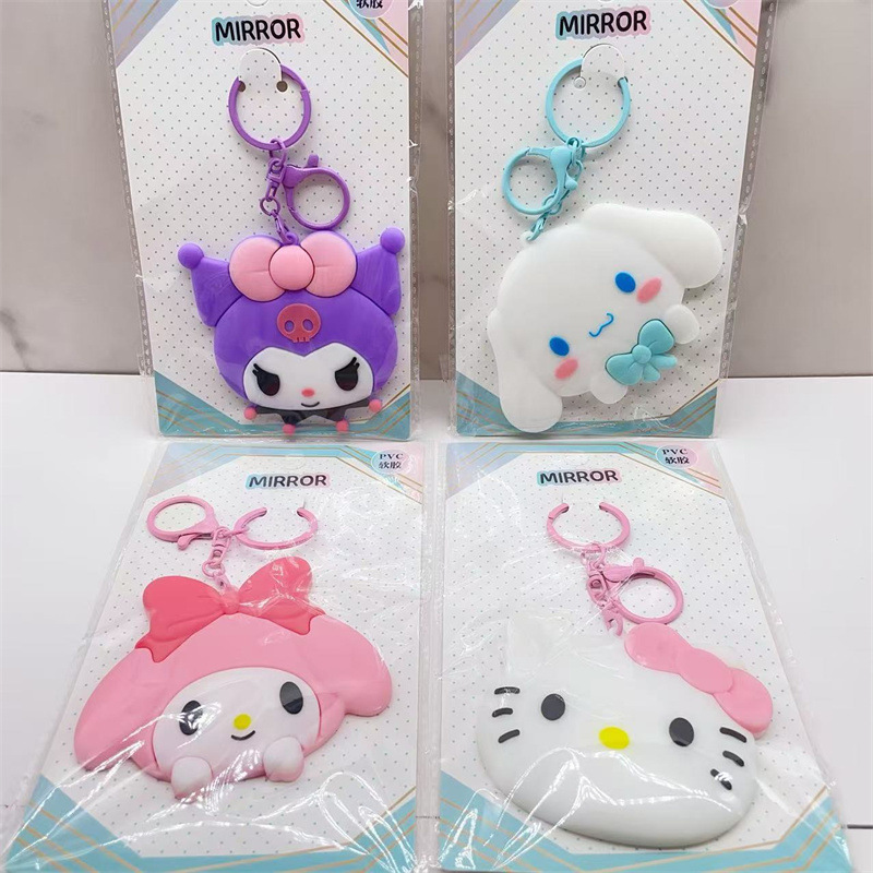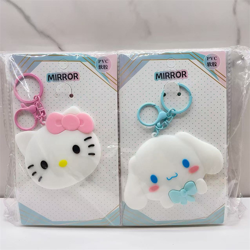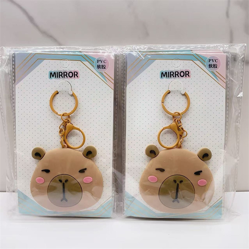 外贸卡皮巴拉三丽鸥库洛米便携镜钥匙扣硅胶mini镜钥匙链礼品